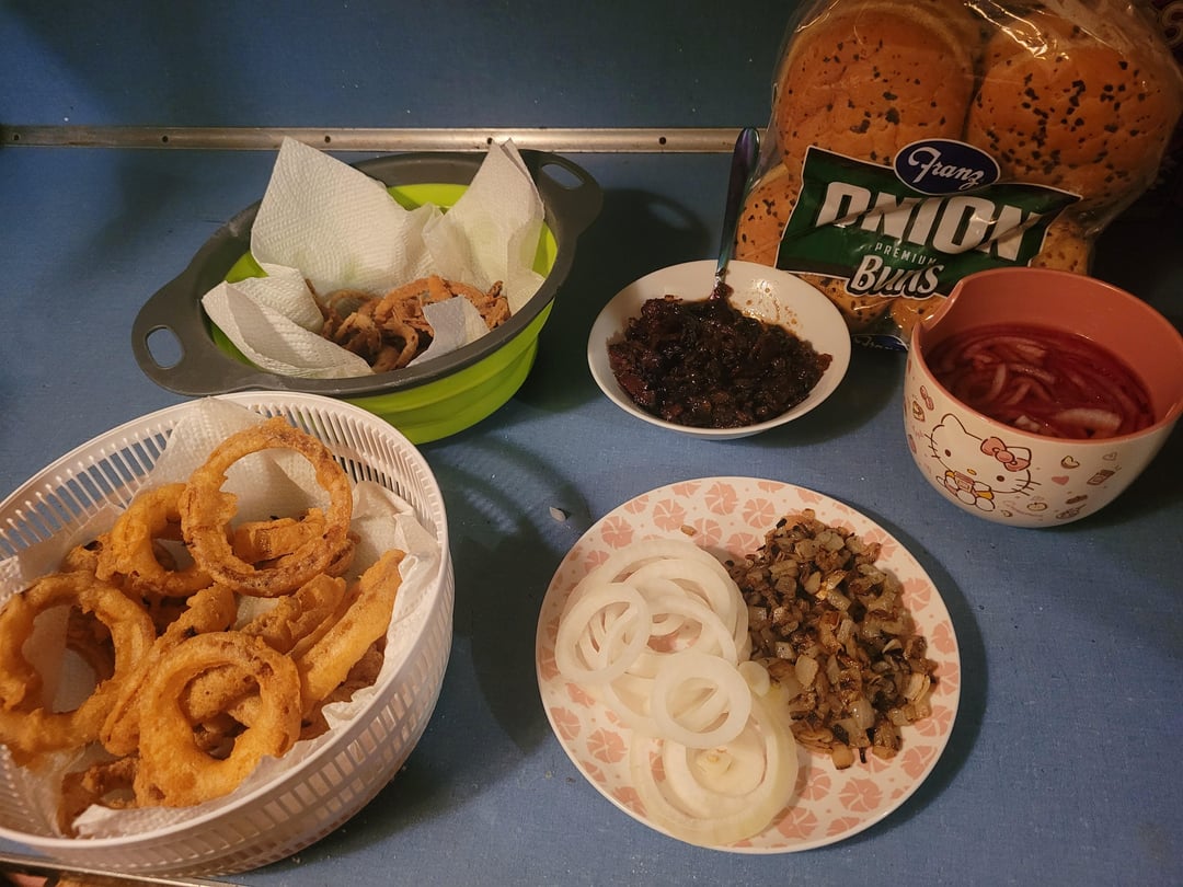 A recipe spawned via my husband's r/somnogastronomy, the masterpiece you see before you is none other than the Septuple Onion Burger, or, colloquially, THE BIG ONION.