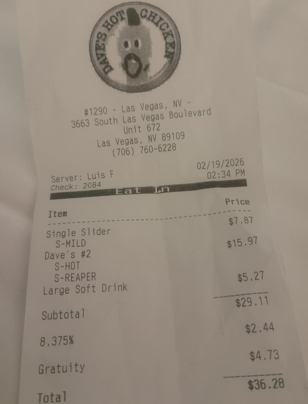 They don't have Dave's Hot Chicken in my neck of the woods but I saw there was one close while in Vegas and I've seen some posts about the Reaper so, naturally, I had to try it! Got a #2 with 2 sliders and fries. I got 1 "Hot" and 1 ""Reaper". Man the sliders are Soo good! I'm a huge fan.