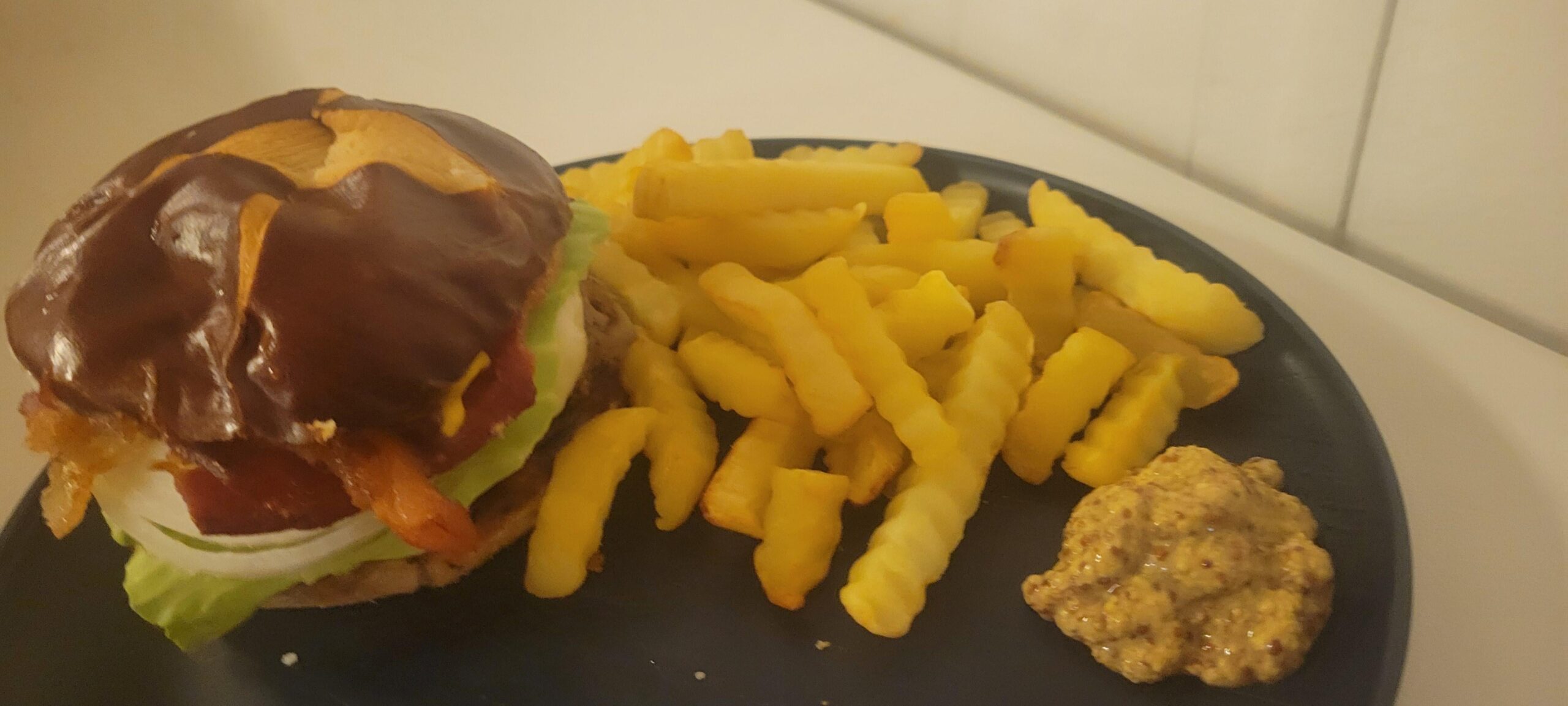 pretzel bun, lettuce, mayonnaise, mustard, ketchup, tomato, fried onion, fresh onion, burger, provolone.crinkle fries and stone ground for dippin. all thanks to my stepmom. she's amazing. by Spud_potato_2005 10 Comments MeaNovissimaBibere 3 weeks ago Hell yea, live it up alepponzi 3 weeks ago Congrats! Enjoy your first legal beer Ok-Albatross1963 3 weeks ago Happy birthday dawg🥳 JD_tubeguy 3 weeks ago Happy Birthday and killer burger and fries! dadjokingmaterialist 3 weeks ago Happy bday! BrainwashedScapegoat 3 weeks ago Happy Birthday!! AnythingButWhiskey 3 weeks ago Happy birthday bro! Scrota1969 3 weeks ago Happy birthday! Premium looking burger and fireball always go down well! agoodfuckingcatholic 3 weeks ago Spent my 21st in bed sick with a girl who hated me. I hope you enjoyed your birthday MatchTop5364 3 weeks ago happy birthday! hope the burger was good