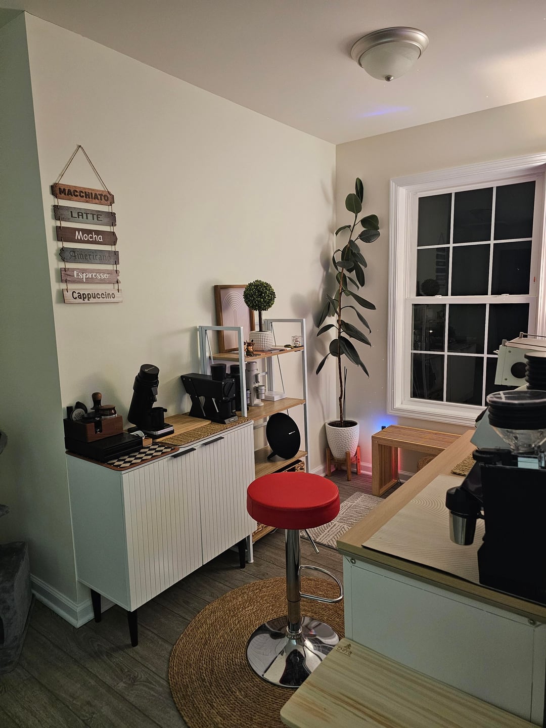 Added a wood top to the coffee station and added some led ambient lighting.