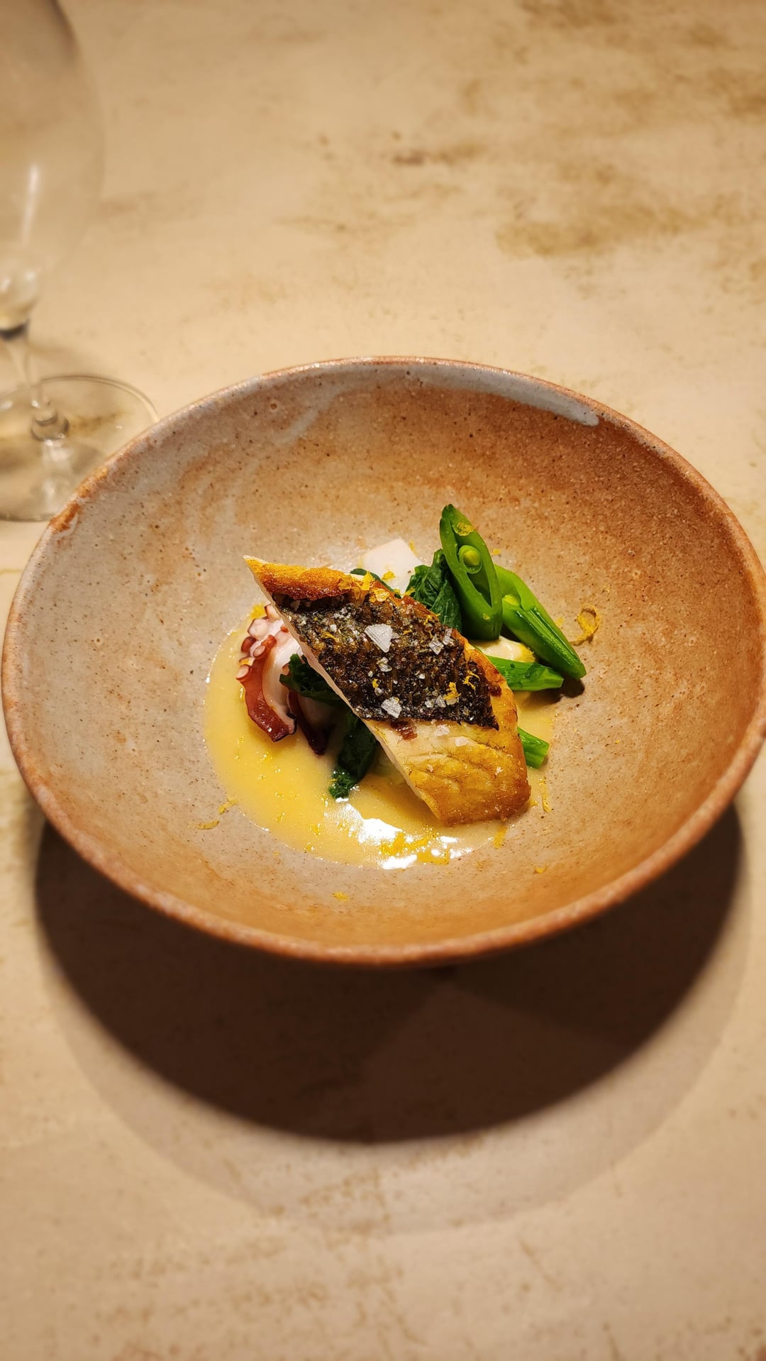 Mackerel with mixed greens. This was the only dish that fell flat for me. No flavor truly jumped out or was overly memorable to me and the mackerel felt like it could have used 15 less seconds in the pan.