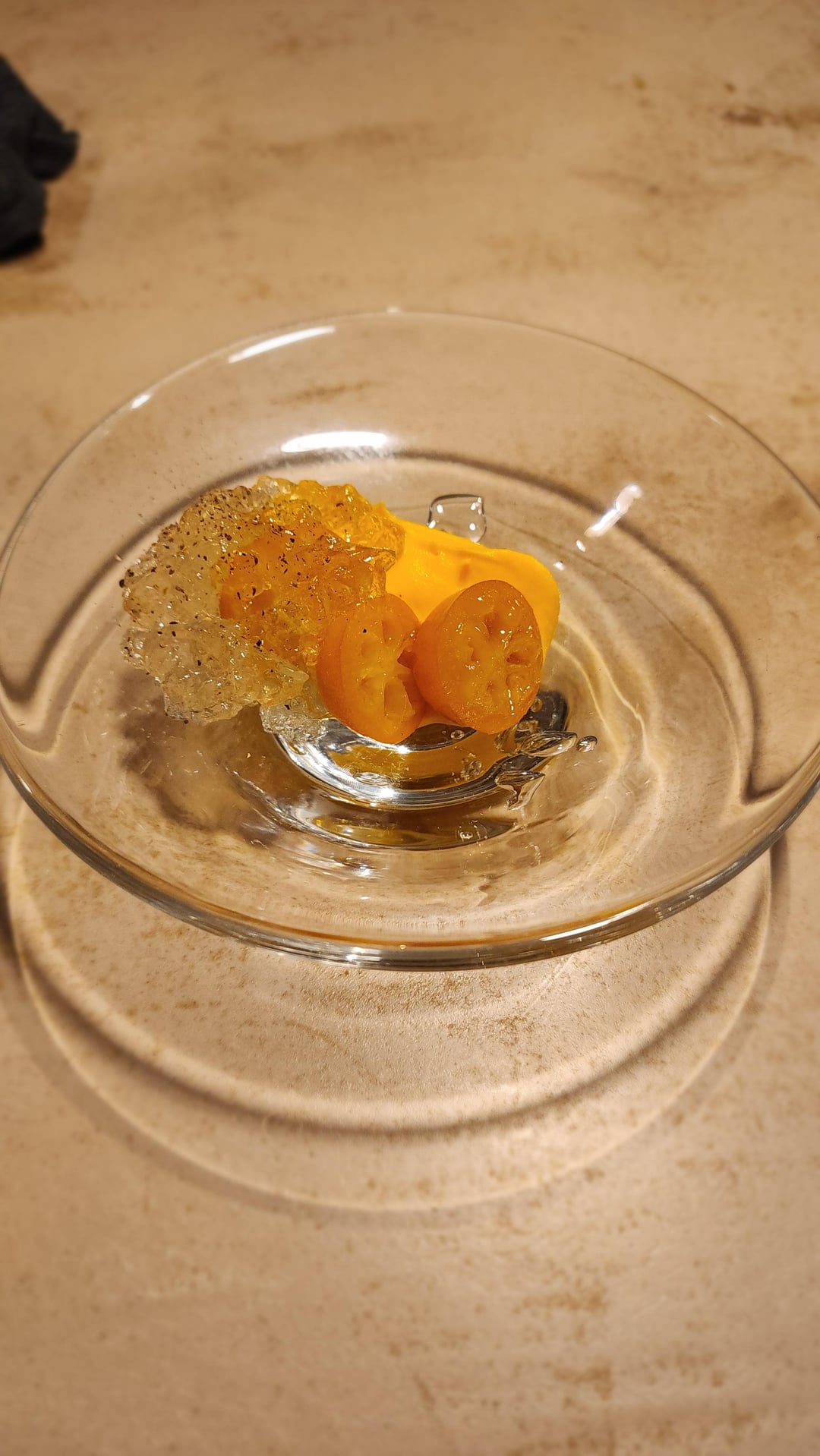 Carrot and mandarin. Pre-dessert was quite rich for a palate cleanser. The purée was perfectly smooth, really enjoyed this.