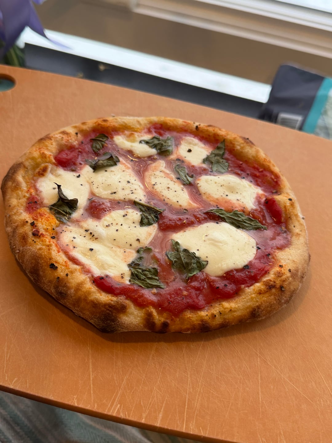 Overall the bottoms became done quickly and forced me to pull the pizzas before the tops had adequate color. Here’s a pic of the setup, my best, and my worst.