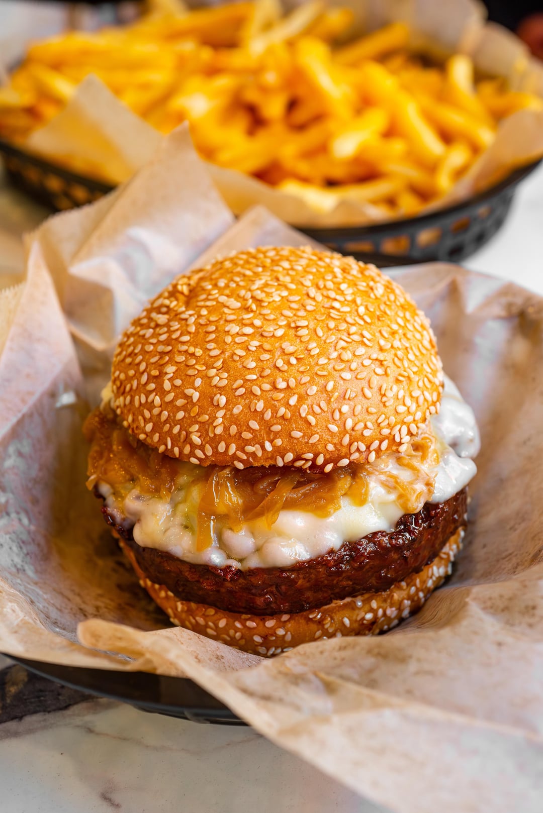 This burger’s ready to fix all your problems, one perfect bite at a time.