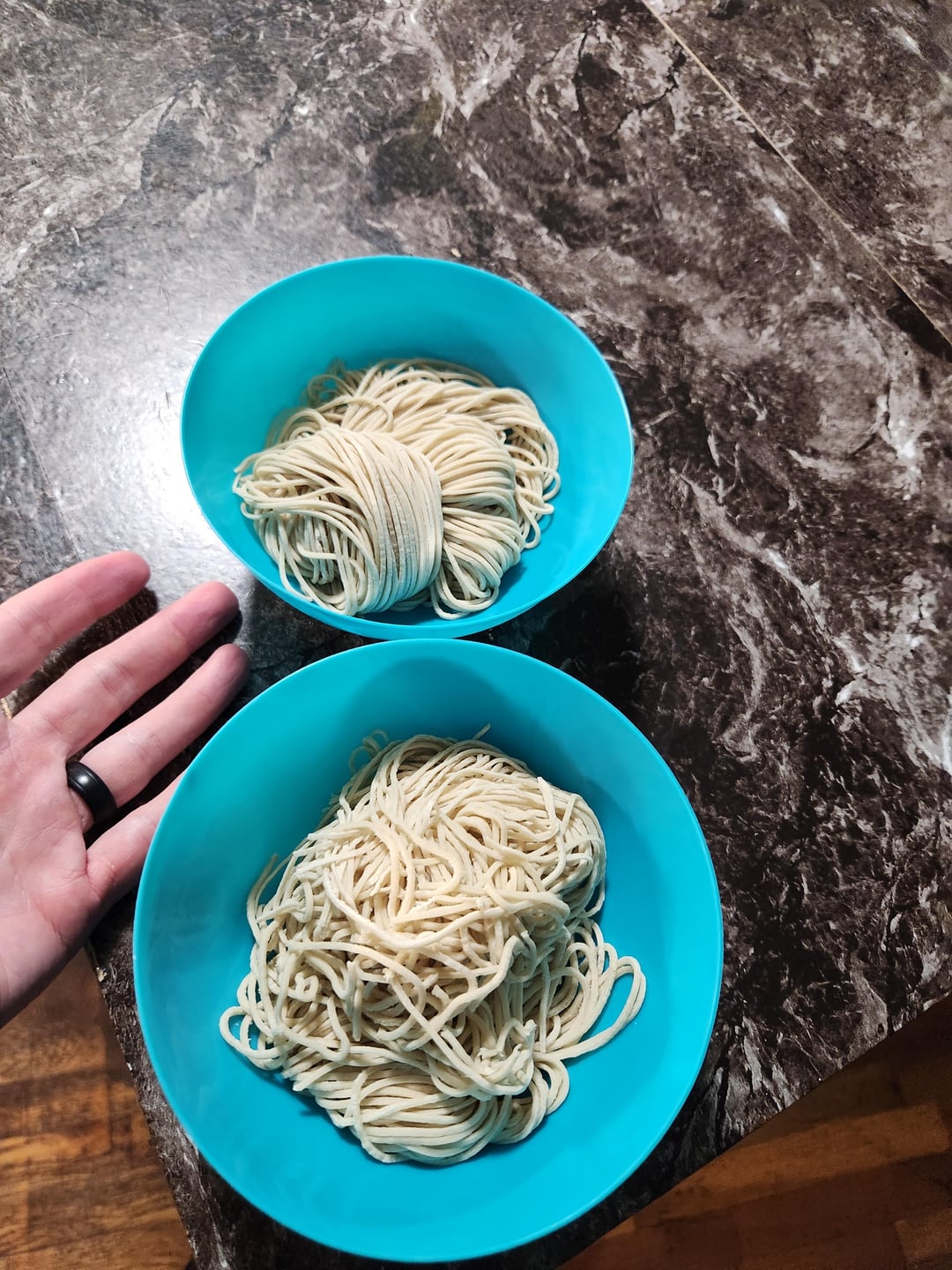 Nice job on the noods! Soup looks good too. Since there’s no meat visible here, is this a vegetarian or soy milk kind of broth you got going on or just no meat topping?