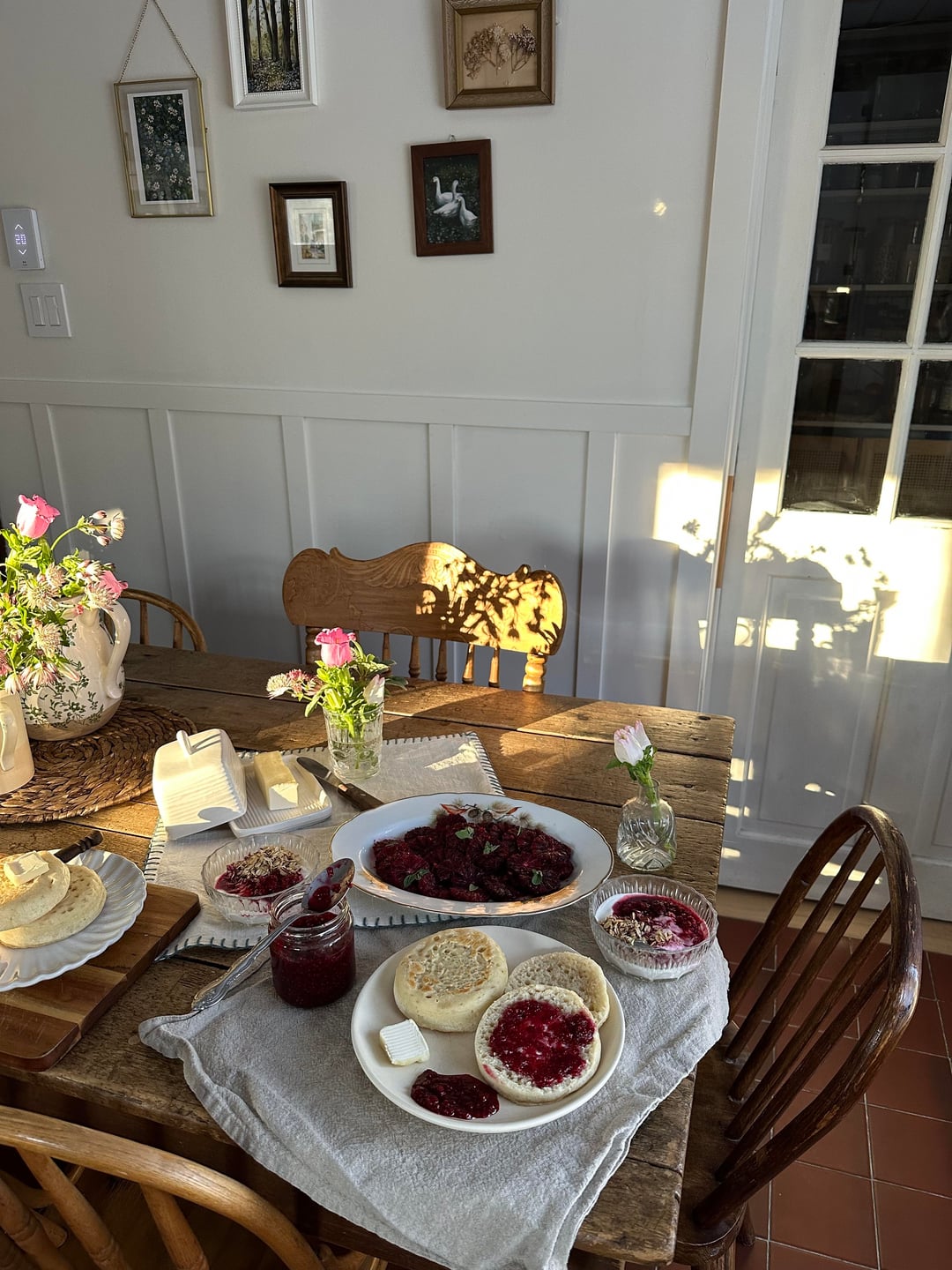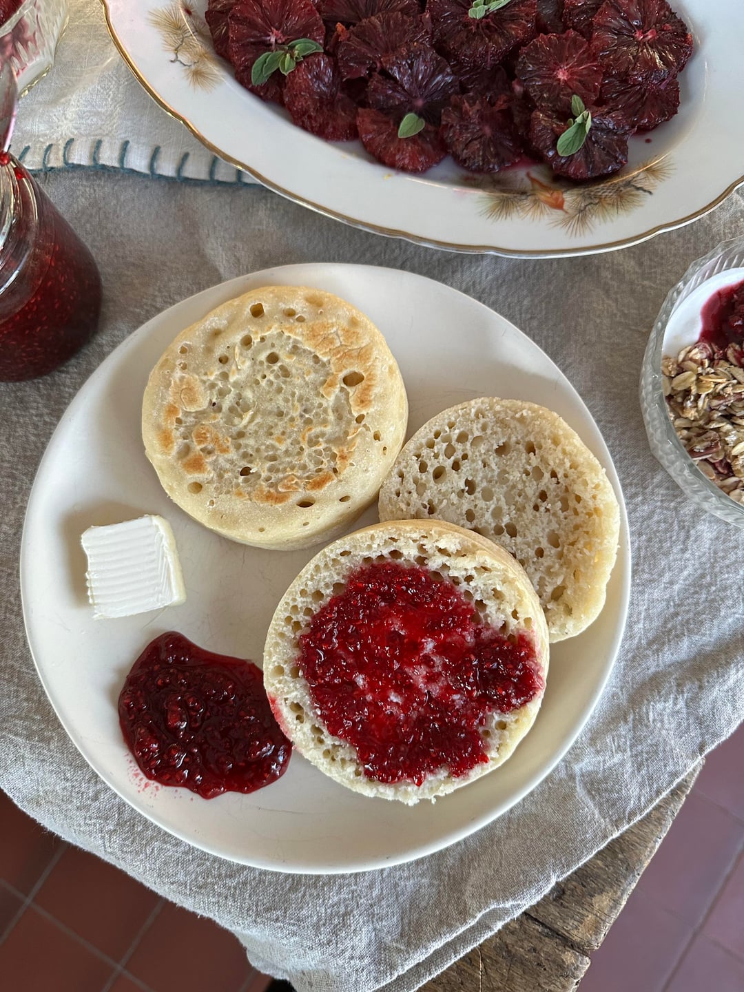 So I made homemade vegan crumpets. Golden on the bottom, full of bubbles on top, soft like little pillows inside. We ate them warm with vegan butter and homemade raspberry jam and honestly… peak cozy vibes.