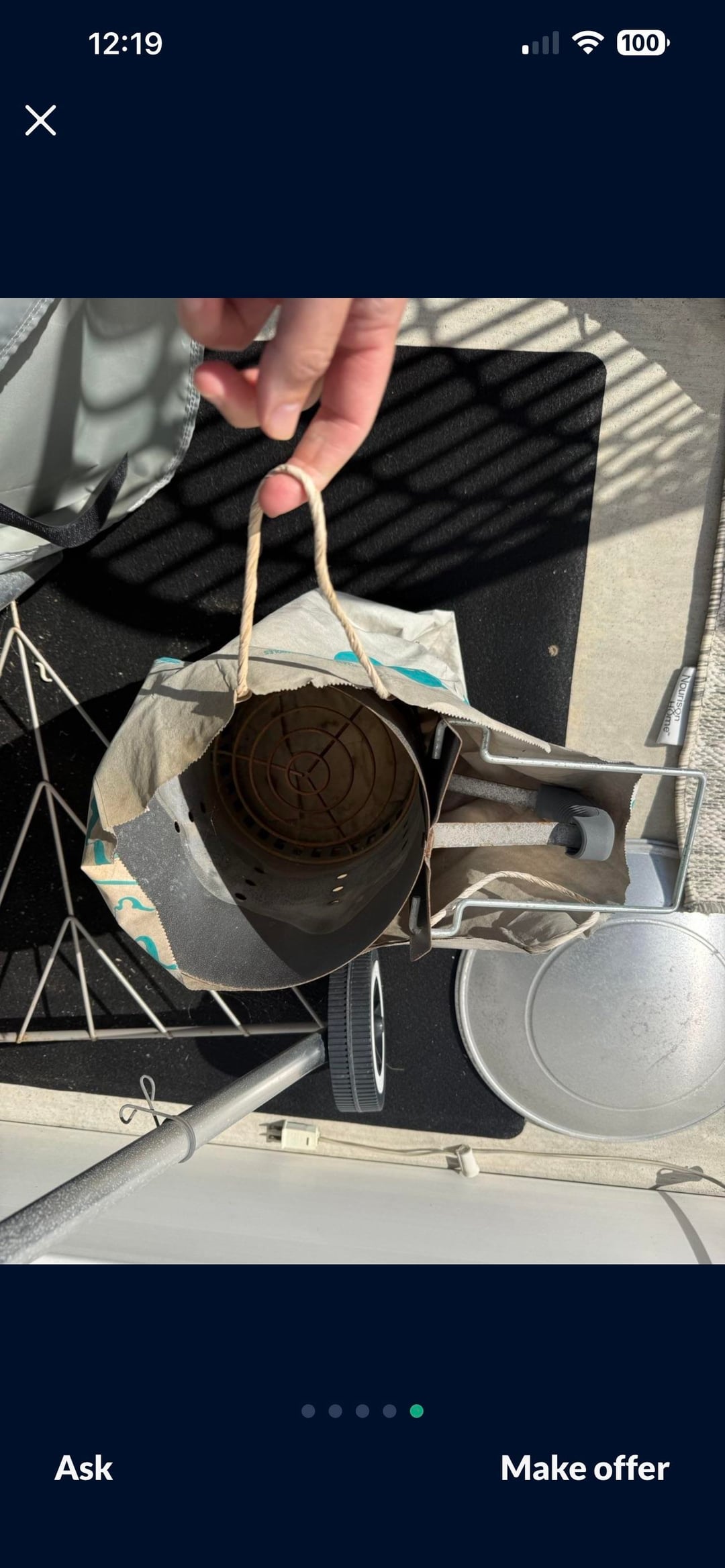 Offered 50 but we’re meeting in the middle at 60. I think it’s a good deal what do you all think? Comes with the cover, the mat, and the chimney which I don’t have.