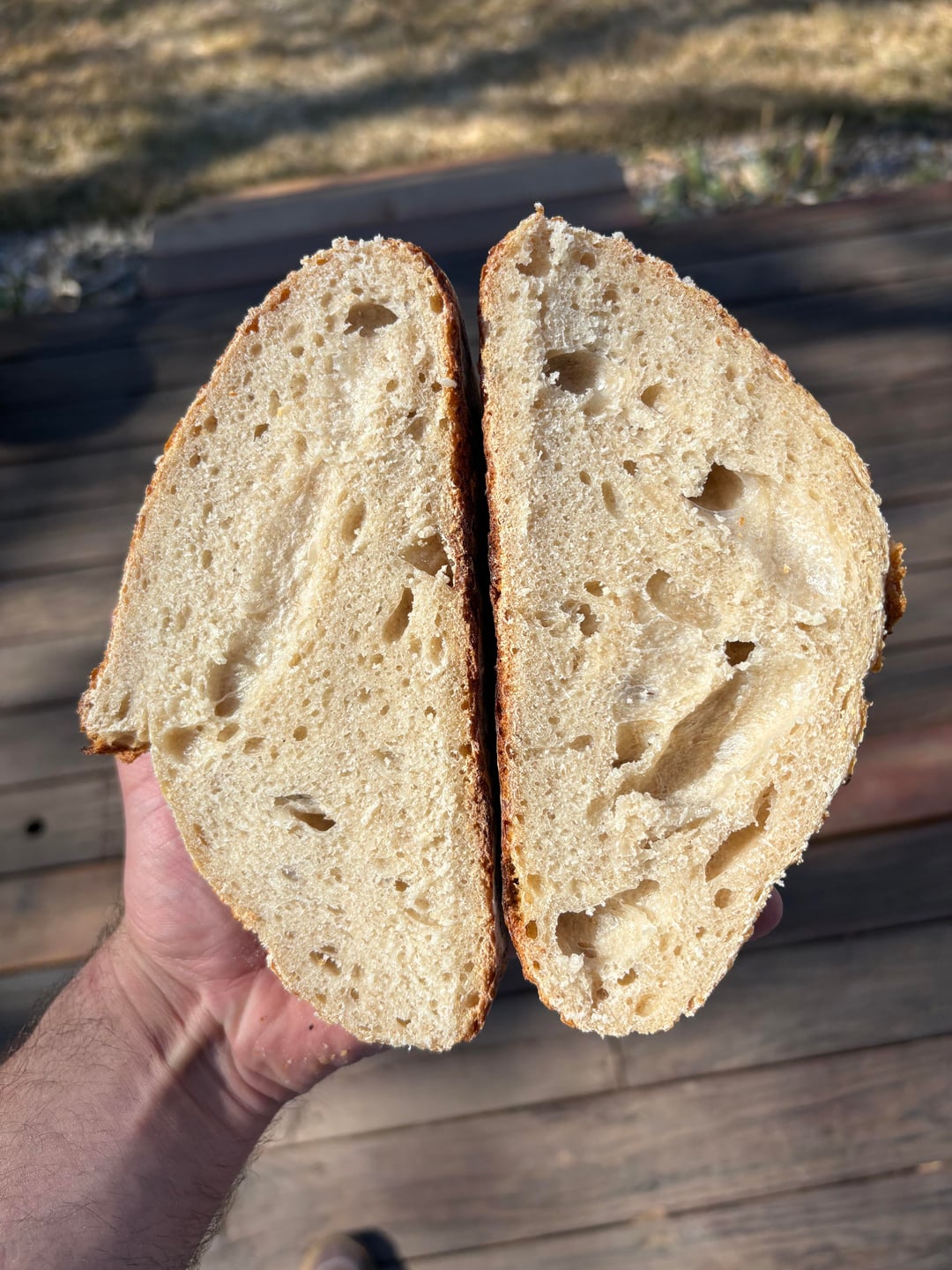 Beautiful! It’s underproofed, but I dare say it’s much better than most of our first loaves were.