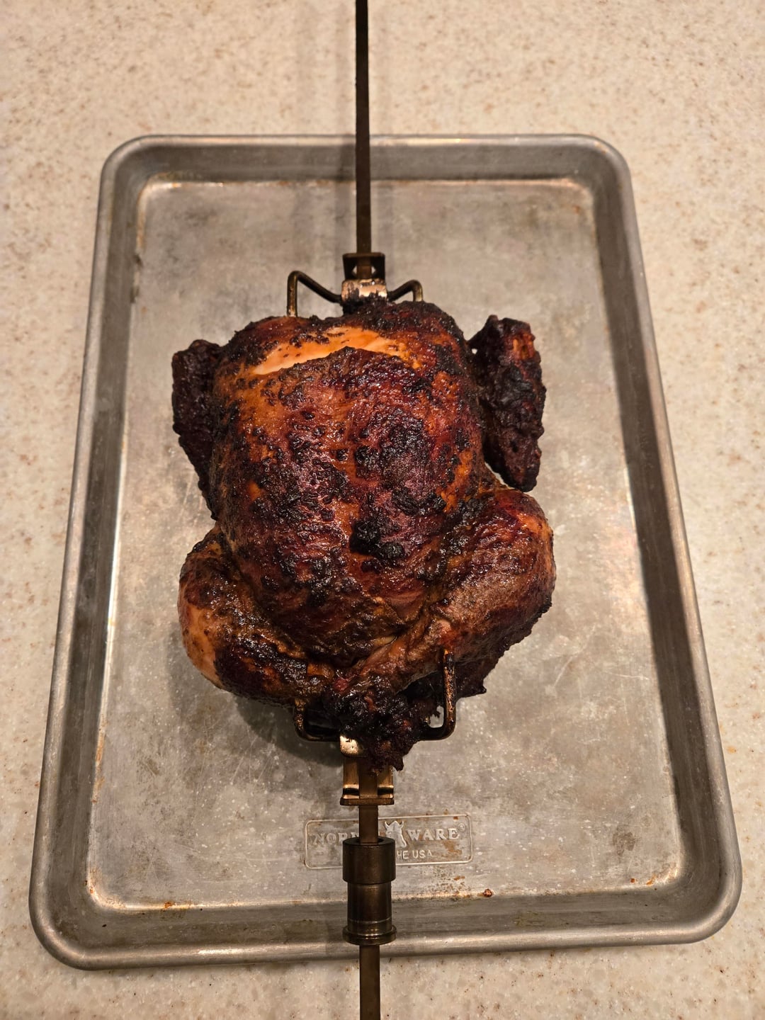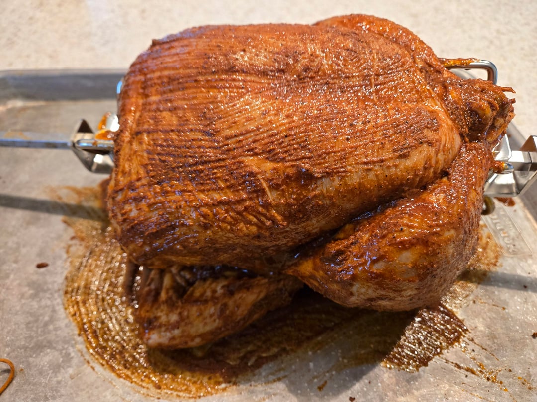 How you get the skin so dark? Oil with the rub? I’ve read conflicting opinions on oiling it. I dry brine mine overnight and it comes out delicious but my skin is never this dark