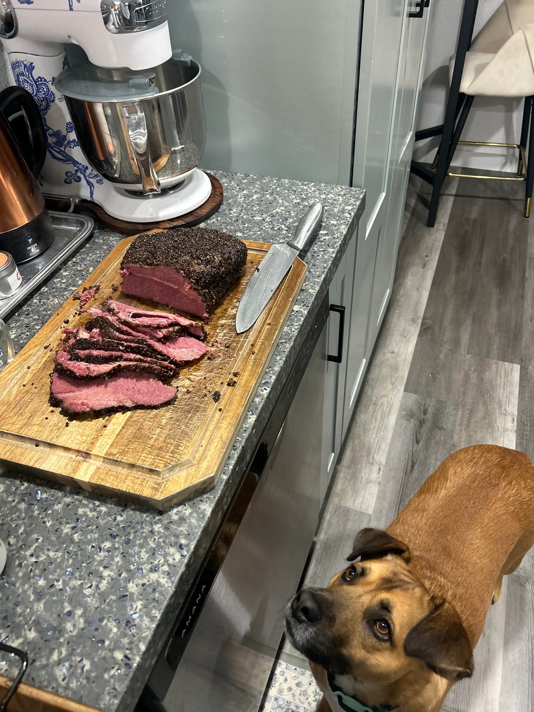 Rub: Hand crushed black peppercorns & coriander seeds, along with mustard powder and some Cuso’s dirt.