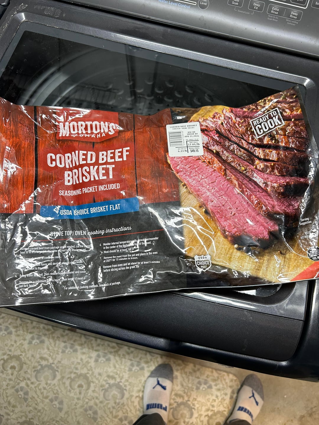 For the information of whoever cares: 6.5ish pound corned beef brisket flat from Costco.