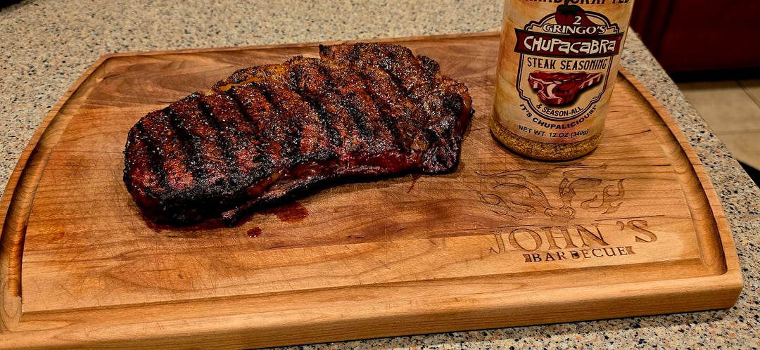 Wagyu ribeye tonight. Saw this steak at H-E-B and had to bring it home. Just the right amount of marbling to beSeasoned with 2 Gringos Chupacabra Steak Seasoning then low smoked and reverse seared over post oak. This steak was absolutely phenomenal!