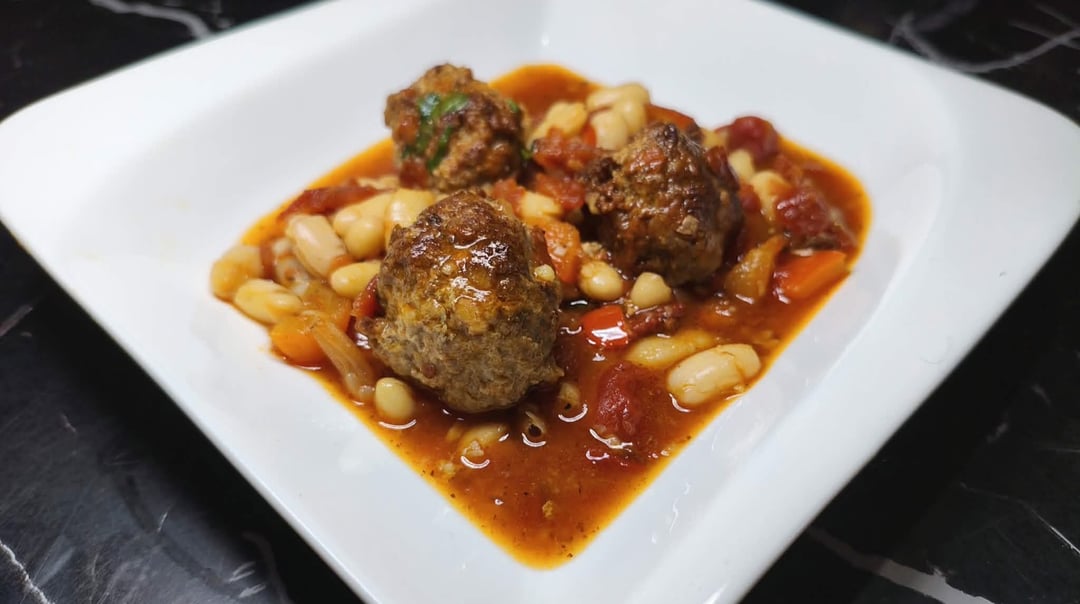 Meatballs with beans and vegetables, this is a dish we really like at my place, it's simple, delicious and has a different taste This combination is fantastic for me…so try it The procedure and ingredients are in the video in the comments Enjoy