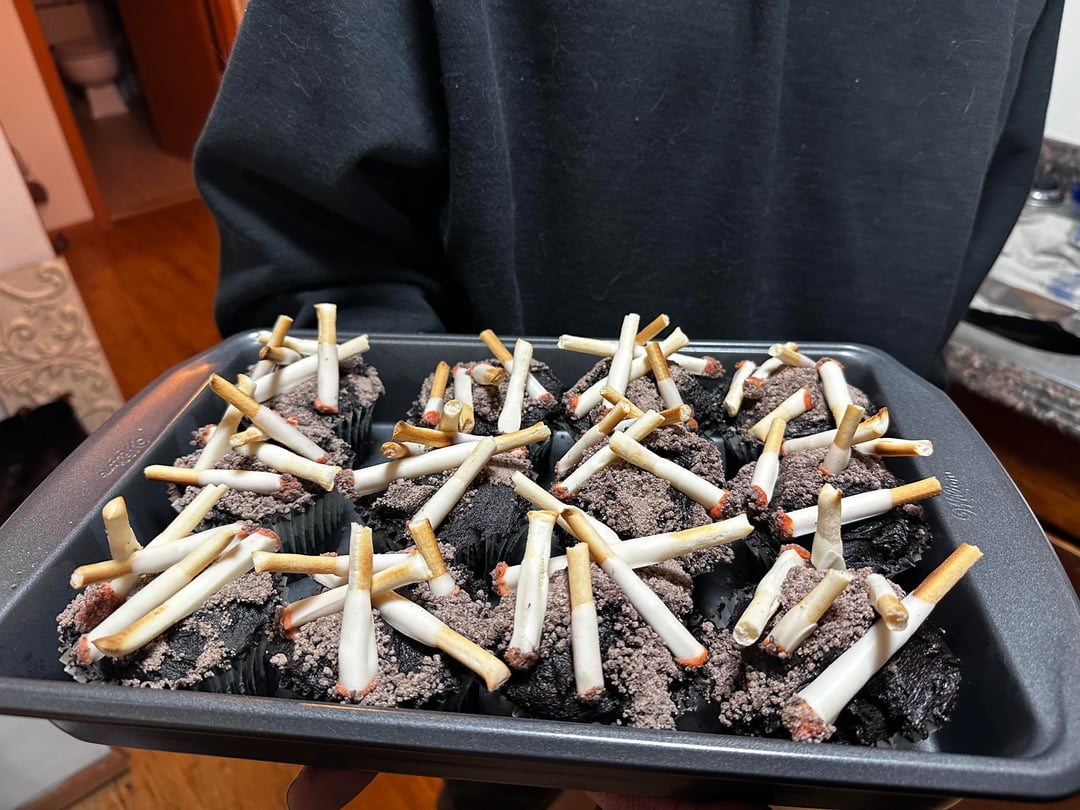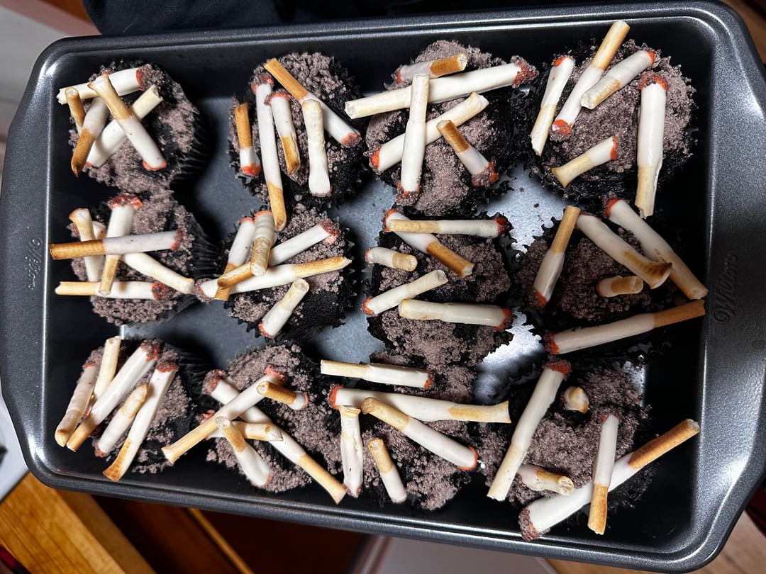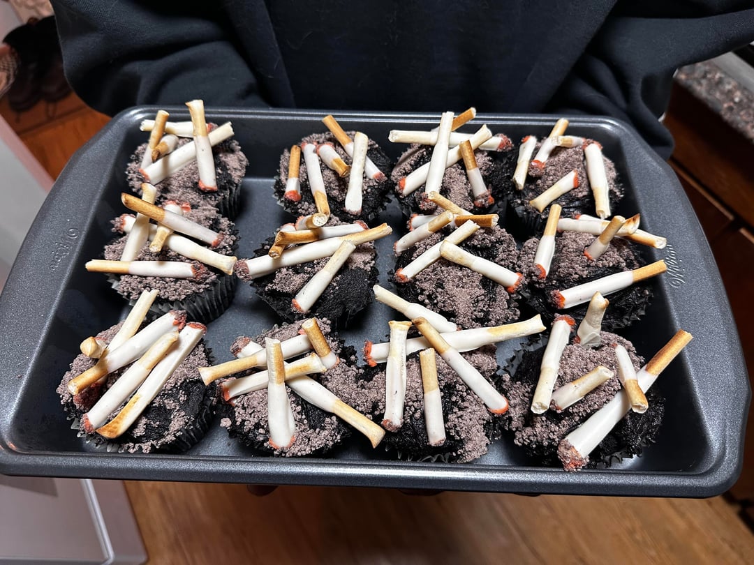 ashtray cupcakes (black cocoa cupcakes and black cocoa buttercream frosting)by Deep_Insect 33 Comments PhxCuckGuy 2 months ago 🤣 love it ImpressiveFix6513 2 months ago These are awesome! They have to taste better than they look 😂😝😜 Infamous_Hyena_8882 2 months ago Sorry. I could even eat those 1191100 2 months ago Wow [deleted] 2 months ago [removed] Khromekitty 2 months ago They look awesome. 👏🏻 RobotRant 2 months ago Yogurt-dipped pretzels?!? PaceVisible308 2 months ago It’s too realistic Alarming_Smoke_8841 2 months ago So cool’ haha StudioSad2042 2 months ago Wow amazing job! Sooo realistic! I hate it! recruitzpeeps 2 months ago Why? DendarFaithful 2 months ago It’s very realistic…no thank you haha cliff99 2 months ago I would serve these at a Mad Men themed party. staciasserlyn 2 months ago Stahhhhp! This is grotesquely fantastic!!! Vertigobee 2 months ago r/ATBGE SWNMAZporvida 2 months ago Oh trash 🗑️ send it to me for proper disposal and cleaning Traditional_Oil3509 2 months ago ngl i thought those were real cigs, great job OP! GardenVarietyGenius 2 months ago That’s so creative! Catnip_75 2 months ago That’s disgusting. I love it! Haha zagafi 2 months ago Nope. Euphoric-Pie-4372 2 months ago Y’all getting way too creative with these cakes 😭 No-Manner9941 2 months ago Did they taste good? Walaina 2 months ago The marshmallows look delicious. It I would have straight used candy cigarettes _Pliny_ 2 months ago Thanks, I hate it.But I actually love it. 10/10 InspectorOk2454 2 months ago Diabolical 😂 ByronicCommando 2 months ago Good April Fools’ cupcakes. “Ooh damn, brought the wrongs ones. Whoops!” saulsa_ 2 months ago That looks awful.I want to try one. illneverforget2015 2 months ago Very realistic great job but I could never eat them ever bootymakesmeweak 2 months ago wow!!!!! ChaoticToxin 2 months ago I have a lot of conflicting emotions looking at these XQsUWhuat 2 months ago Unhinged. Nice work! rarebiird 2 months ago love it! i just did an ashtray cake recently, so fun embarrassed_ice__69 2 months ago It looks so real that it’s so gross , but edible at least!