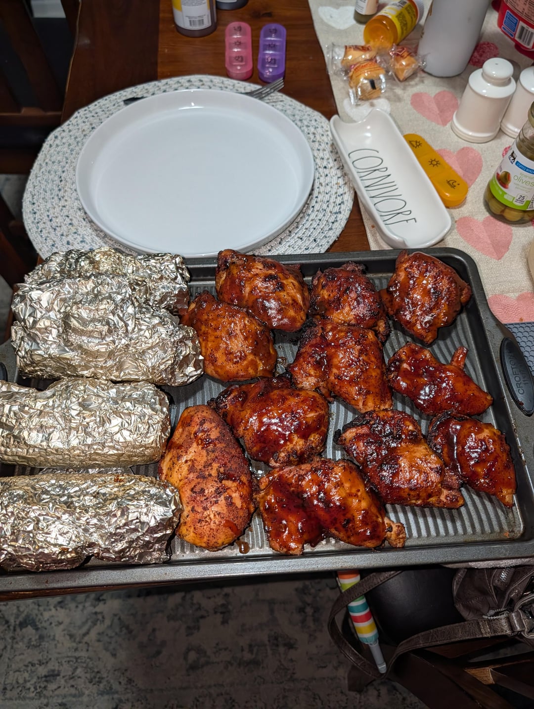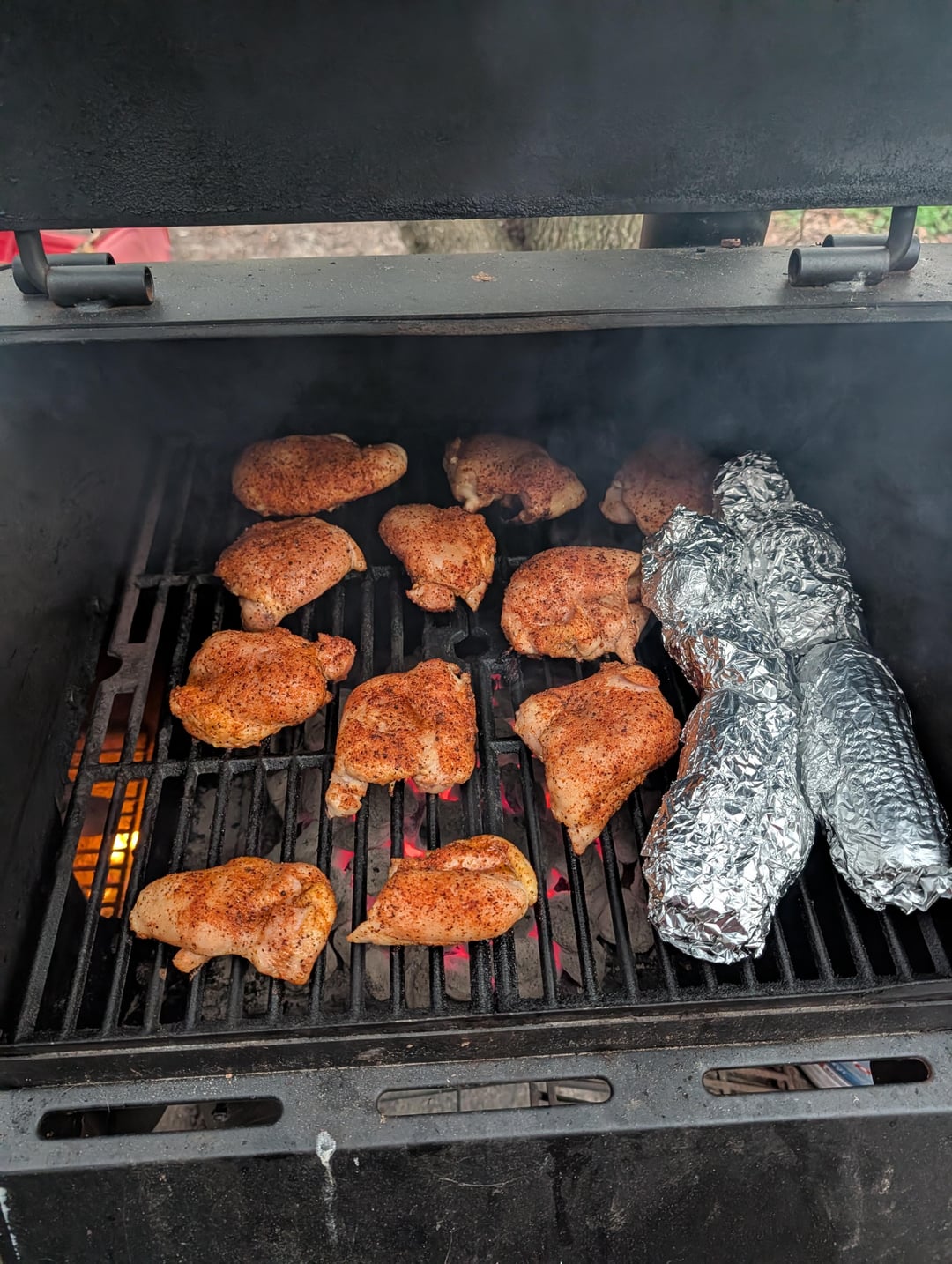 Chicken Thighs! by rysgame3 5 Comments Engineering_Simple 2 weeks ago I saw the red oak and immediately knew that you knew what you were doing, NC BBQ Brother 🍻 FunkMasterE 2 weeks ago I’m guessing there’s corn on the cob in the foil? Gotta feed the cornivore! lol curiousbydesign 2 weeks ago Would love to have a plate! Enough-Cod7281 2 weeks ago Looks great! I have the same offset setup and am curious: why do you have fires going at the same time in both the smoke box and grill? Original-Bobcat8386 2 weeks ago This looks amazing! What is your rub / marinade?