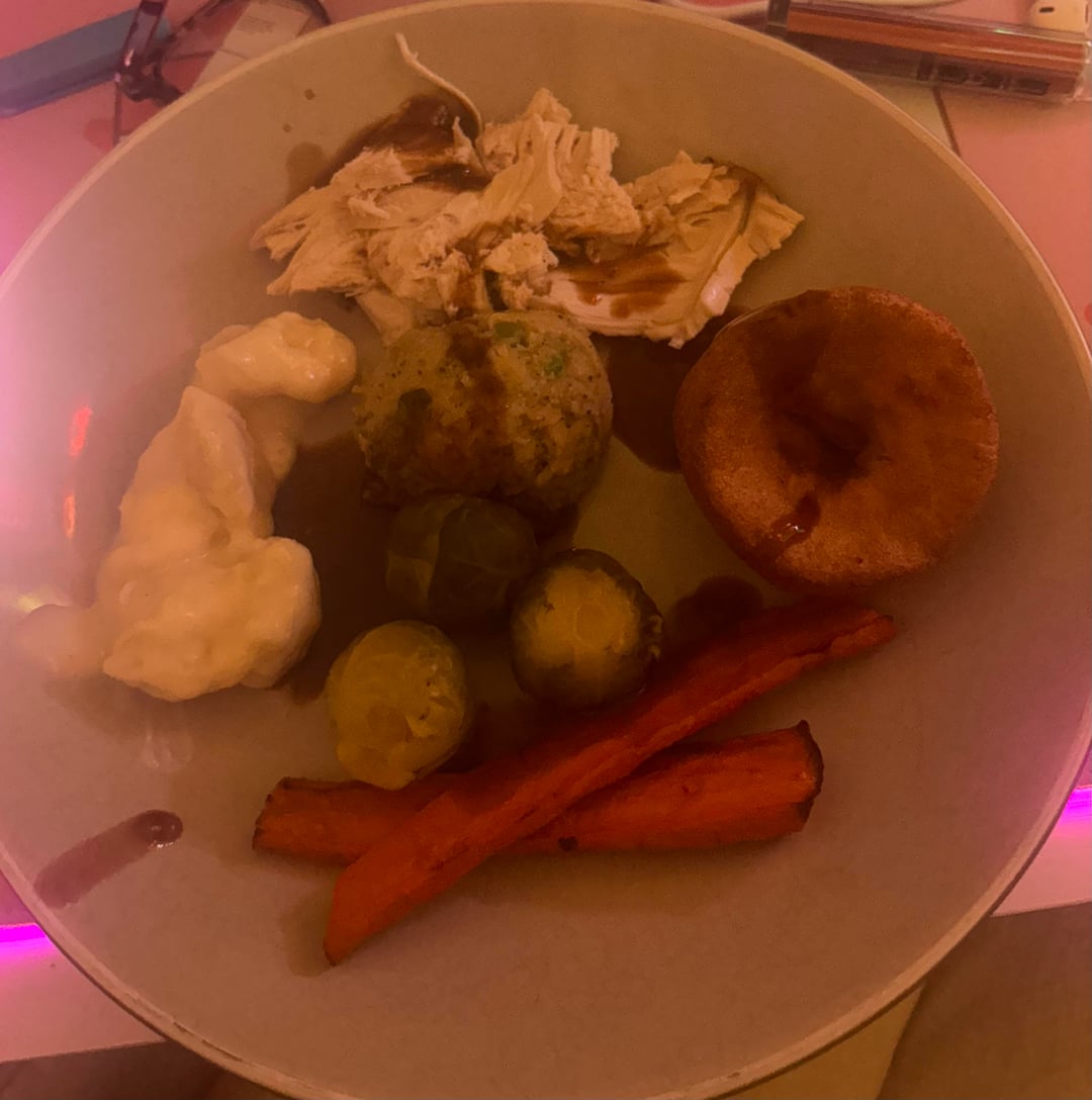Cauliflowercheese, chicken, gravy, sprouts (had 4, 1 notpictured), 2 roasted carrots, 1 Yorkshire and a scoop of bubble & squeak by ieatvodka 1 Comment abbacciho 3 weeks ago I would say like 470
