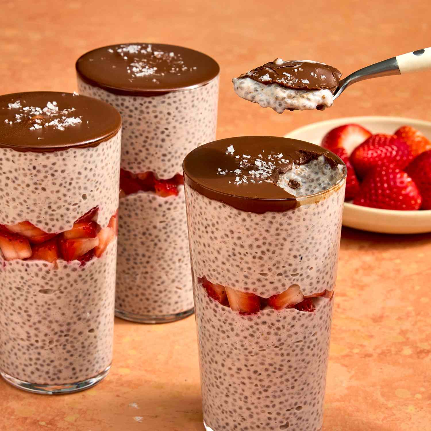 This strawberry-chocolate chia pudding is a fun, make-ahead breakfast that could easily double as a healthy dessert. Fresh strawberries and strawberry preserves add fruit-forward flavor, while a layer of melted chocolate and a sprinkle of sea salt give this sweet pudding a savory twist.