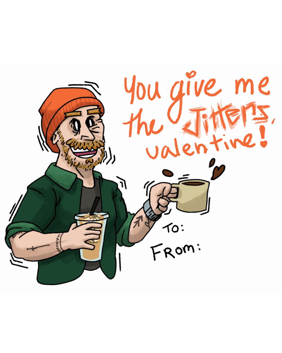 The baristas at my local shop (Sunset Coffee in Midvale, UT) are the best, and they provide such great conversation. I made these valentines to give out to them along with some candy to brighten up their valentine's day, and I hope y'all get a kick out of them as well!