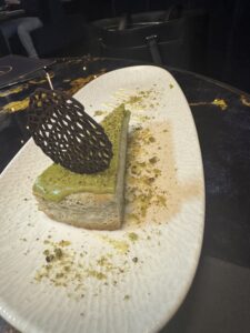 Despite feeling full, dessert was irresistible. Our son chose the Matcha Pistachio Cheesecake (£9.50). The pale green filling was silky and creamy, with a gentle earthy bitterness from the matcha balanced by subtle pistachio sweetness and a buttery biscuit base. It was rich yet refined.