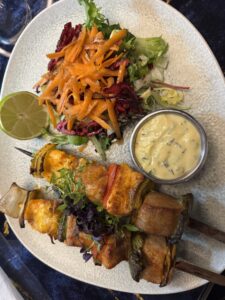 For mains, my husband selected the Mixed Spicy Skewer (£19.50), featuring spicy chicken and lamb kofta served with salad. The meat was tender, well-seasoned and lightly charred from the grill, delivering a subtle warmth rather than intense heat. The crisp salad provided balance and freshness.