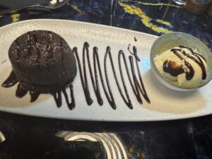 Our daughter opted for the Chocolate Fondant (£8.50). Breaking through the delicate outer shell revealed a warm, molten centre. The deep chocolate flavour was indulgent without being overly sweet, and the accompanying vanilla ice cream provided perfect contrast. We all shared a few spoonfuls.