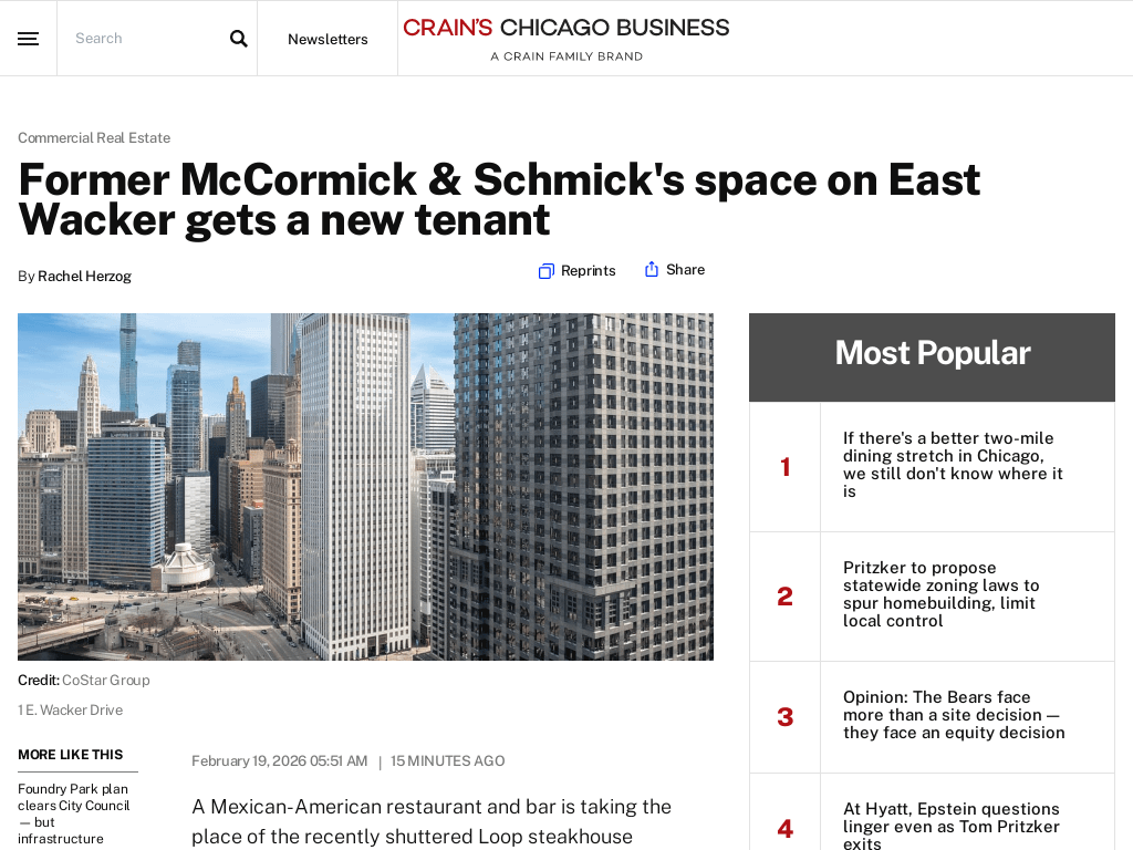 I hear that the [Former McCormick & Schmick’s space on East Wacker got a new tenant](/r/chicago/comments/1r97axv/former_mccormick_schmicks_space_on_east_wacker/)