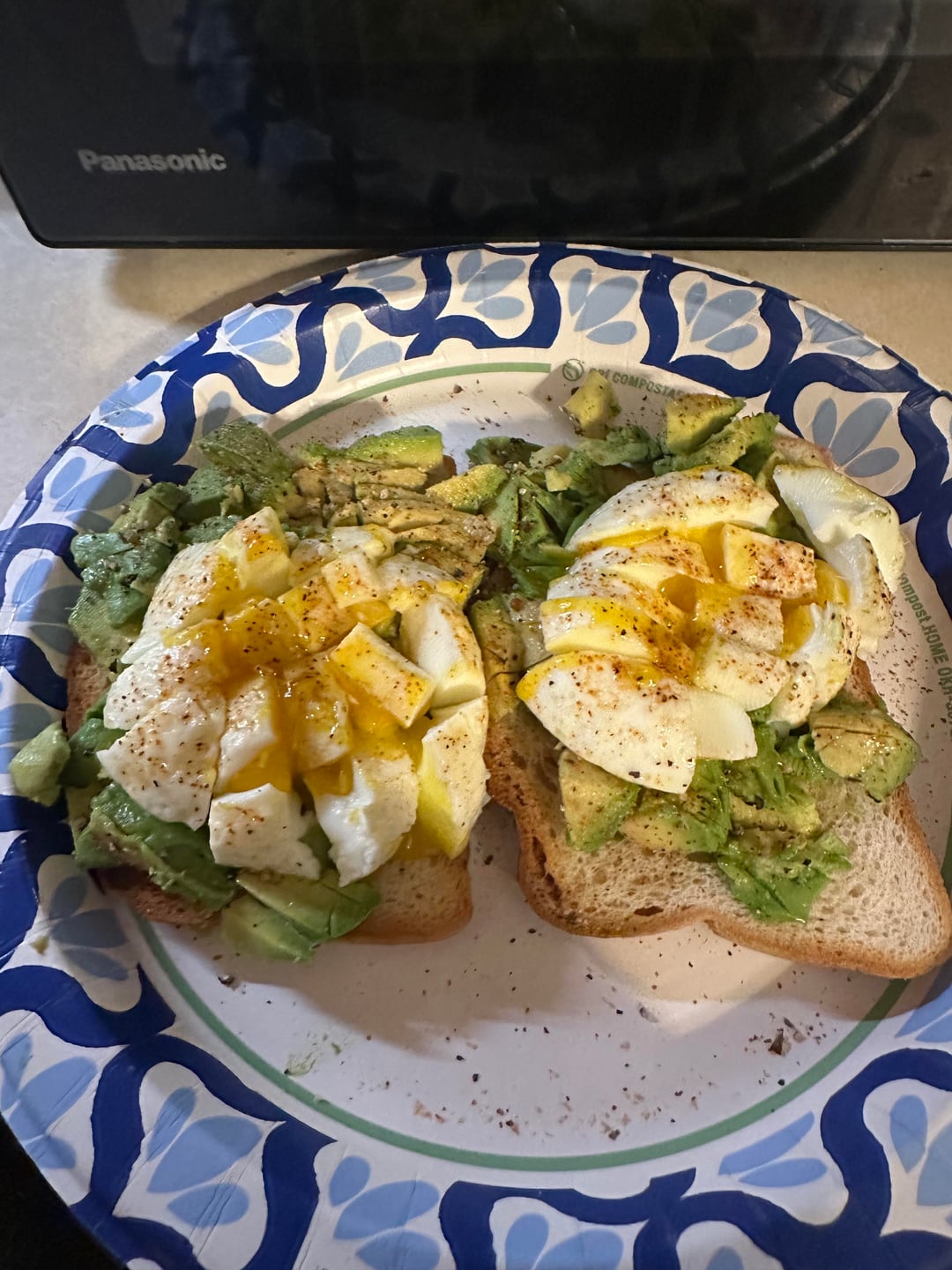 This would be great if the eggs were cooked over easy and it didn’t have any avocado on it and the toast was totally different, preferably multigrain, and it didn’t have that red spice shit all over it.