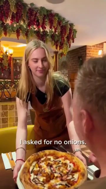 The slap is not for him telling her the order is wrong, it's because he wants pizza with no onions!