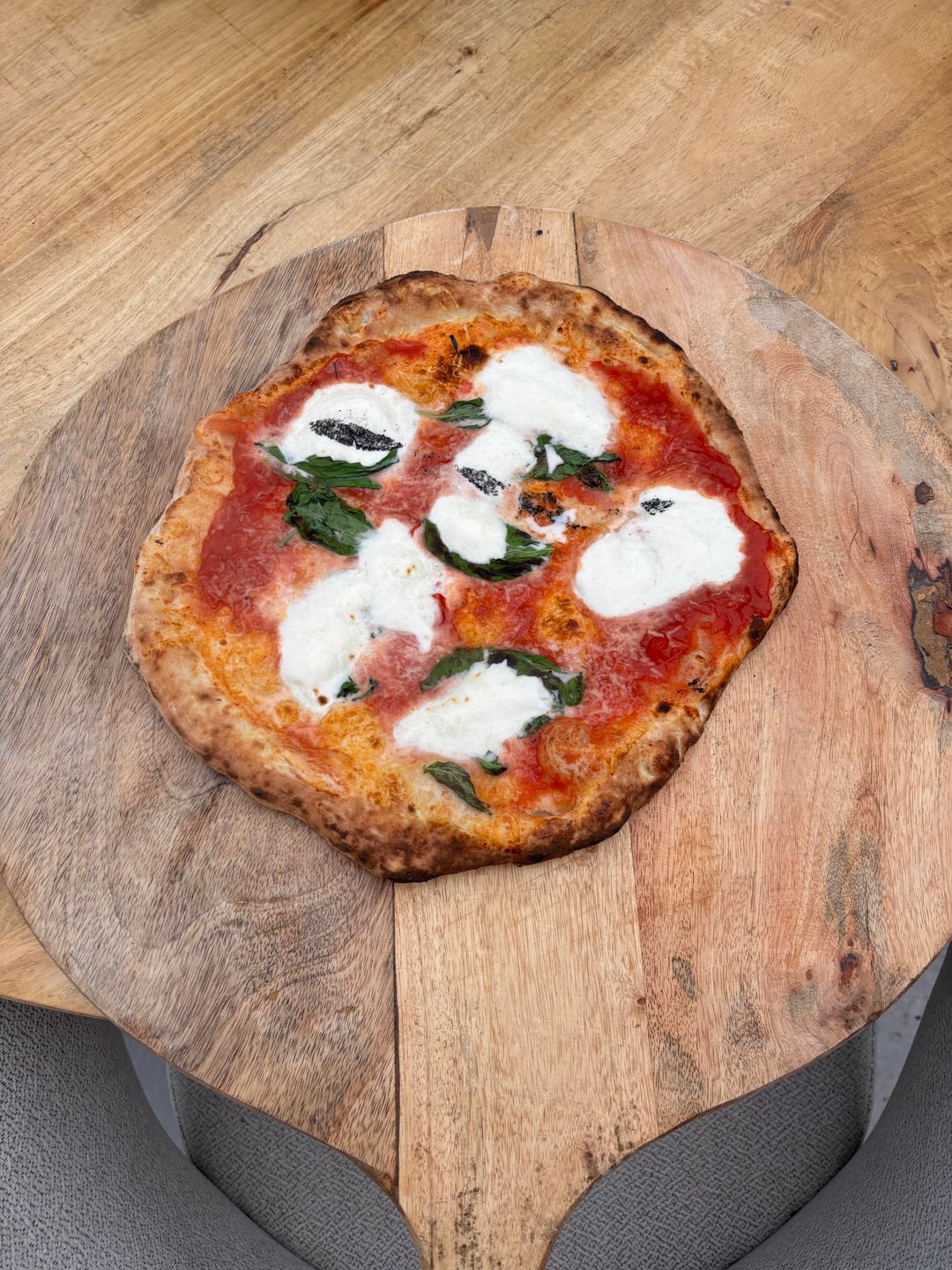 mrSoniv6 4 weeks ago 60% hydration. 25 hours cold fermentedIn the 2nd pic i’ve got the sauce, grated pecorino, mozzarella and basil and olive oil.