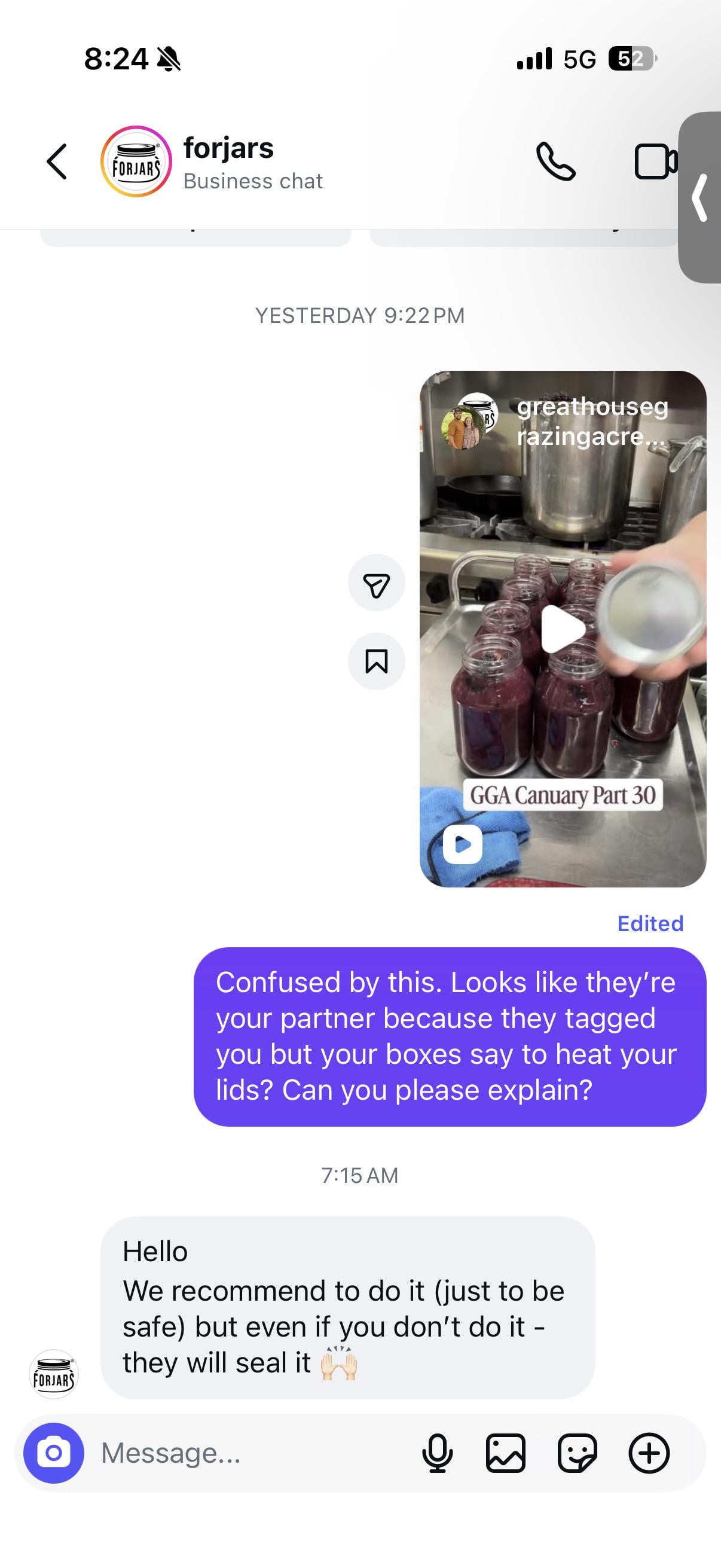 Definitely reach out to support, from what I’ve seen/ heard the social media people are not well trained. For what it’s worth I use ForJars lids and I find they work better and have a better seal rate when I heat them unlike ball lids where it really doesn’t matter.