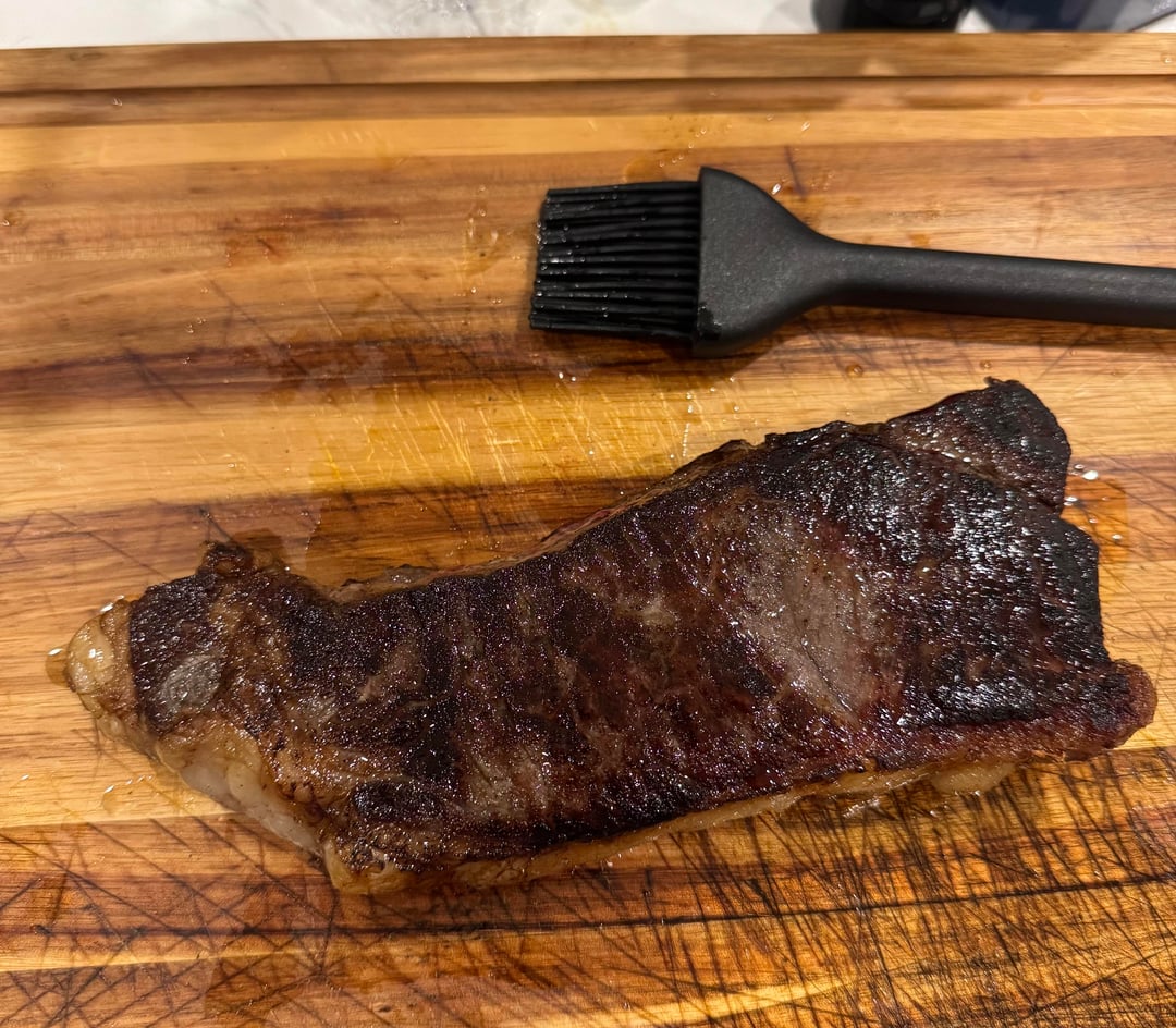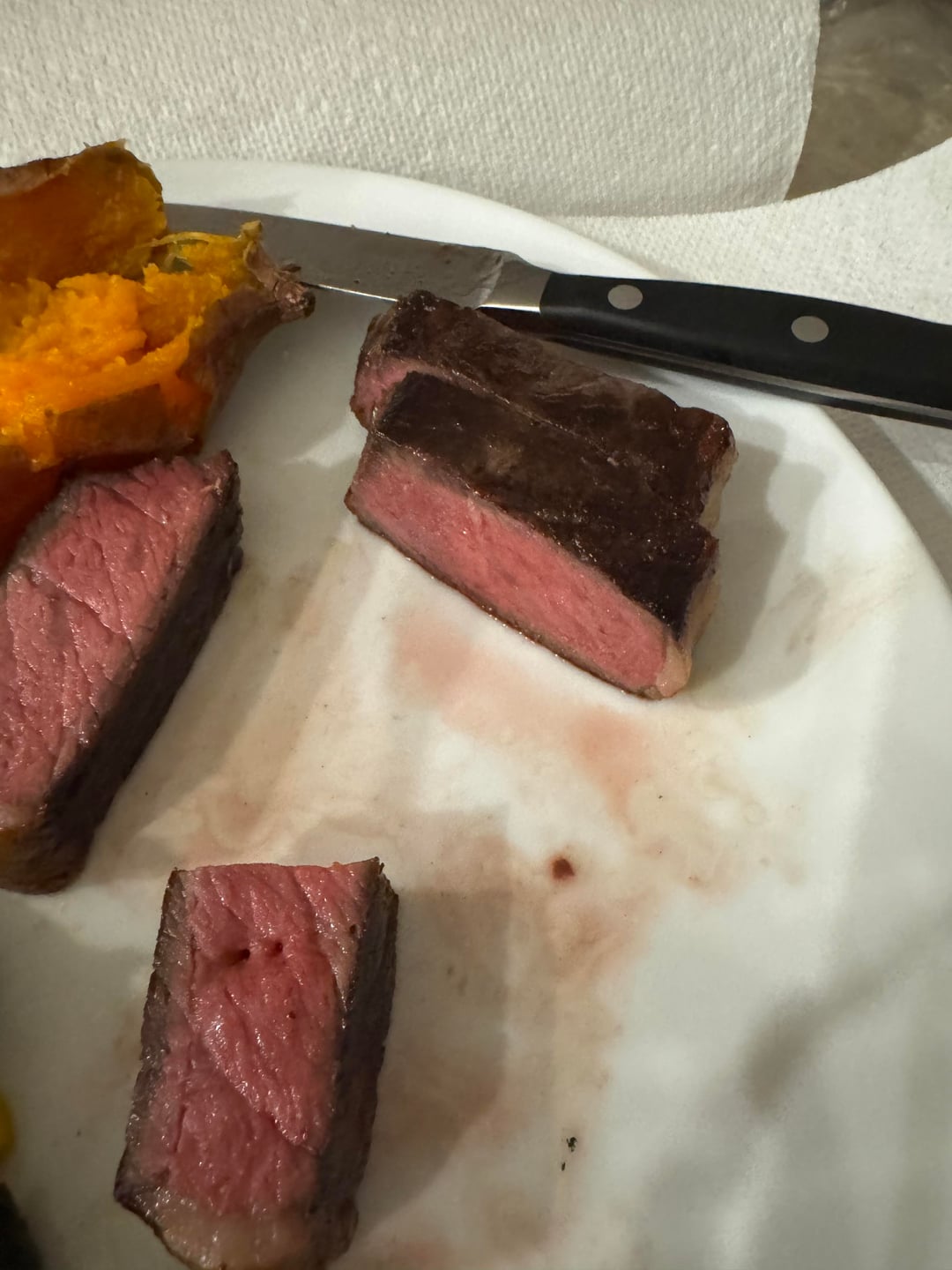 seasoned with salt and pepper, 2 hours in the sous vide at 131 degrees, seared 1 min per side on cast iron skillet, turned out tender and delicious