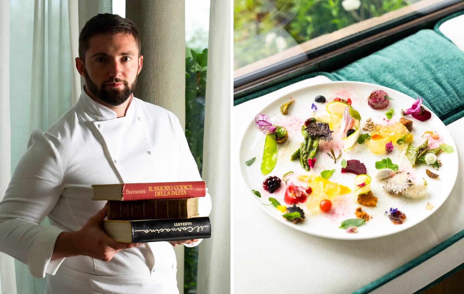 Quadrio was born in 1990 and comes from Gattinara, a town of fog and Nebbiolo wines between Novara and Biella. A late pupil of Marchesi himself, for whom he worked at the beginning of his career at Marchesino in Milan, his CV includes experience at Joia with Pietro Leemann, at Asola with the controversial Matteo Torretta, also in Milan, at the Capri Palace, in a couple of important restaurants in Tokyo, at Disfrutar in Barcelona, at Geranium in Copenhagen, and finally finding a new mentor in Alain Ducasse, with whom he worked at the Plaza Athenée in Paris and for whom he was supposed to oversee an important opening in New York. Everything was canceled due to the pandemic, but fate, which seemed cruel at the time, ultimately proved to be almost benign.
