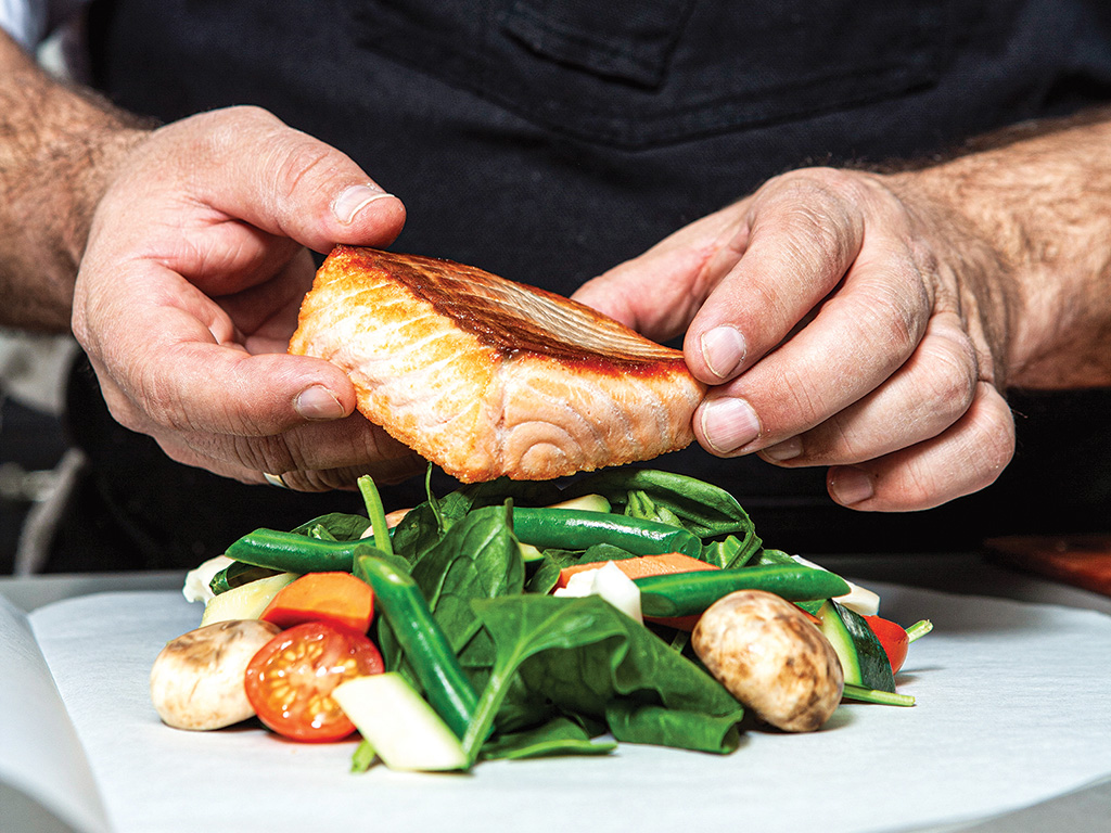 Chef Zamarra prepared a traditional French dish called Saumon en Papillote; Salmon and vegetables steamed in parchment paper. Photo by Adam Finkle.