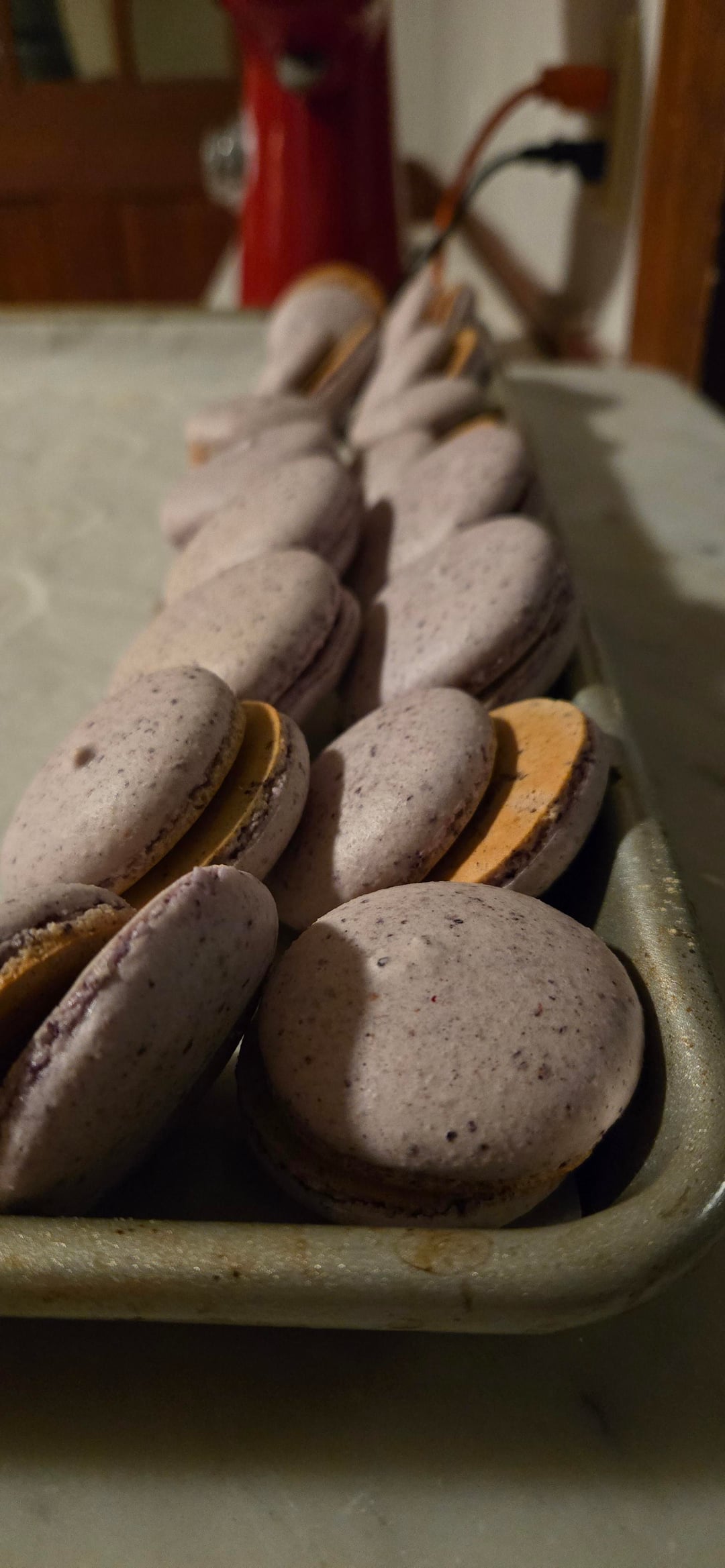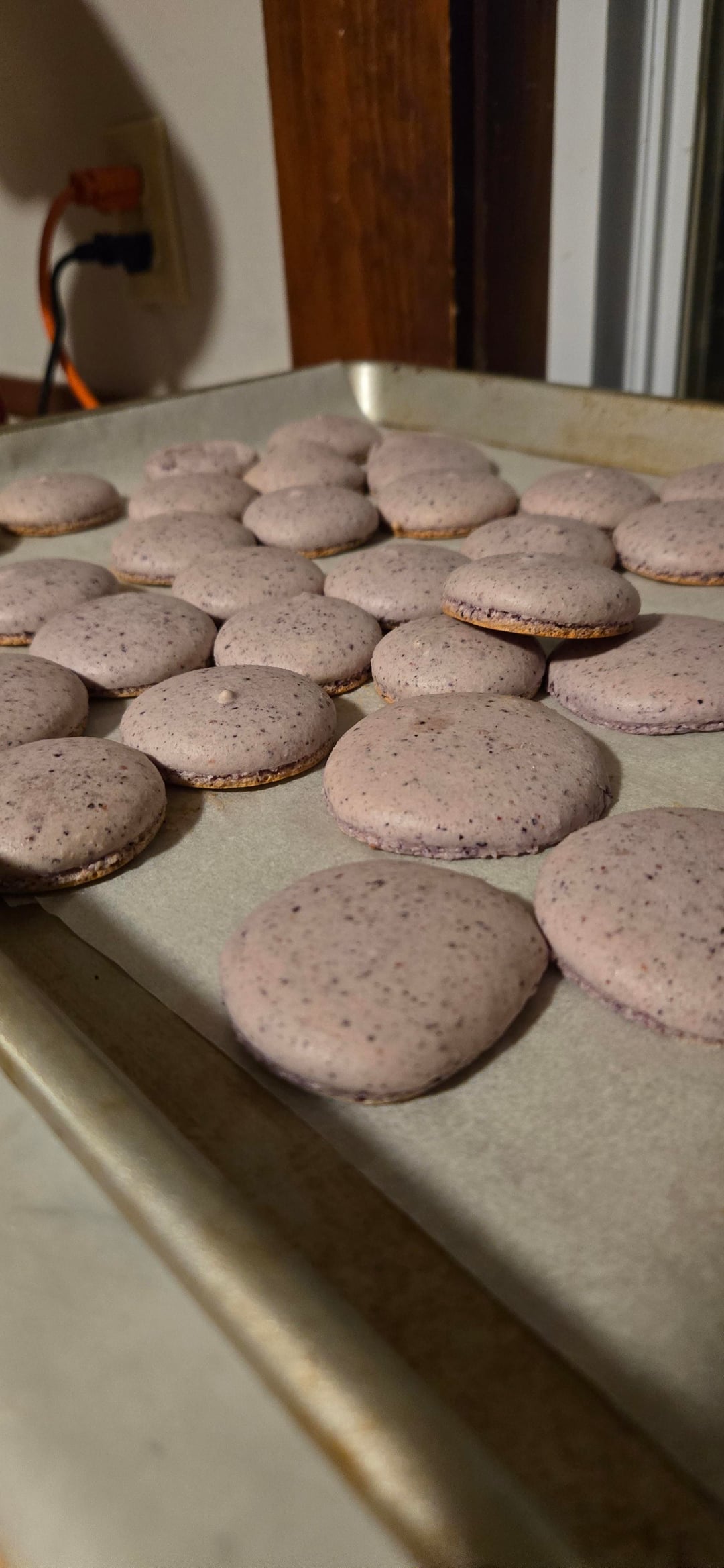this has been a project to make bluberry shell macarons with out any food dyes. i used freezed dried berries and powdered them and mixed with the almond flour and powder sugar. and the consistancy, flavor and shell finally looks well enough.