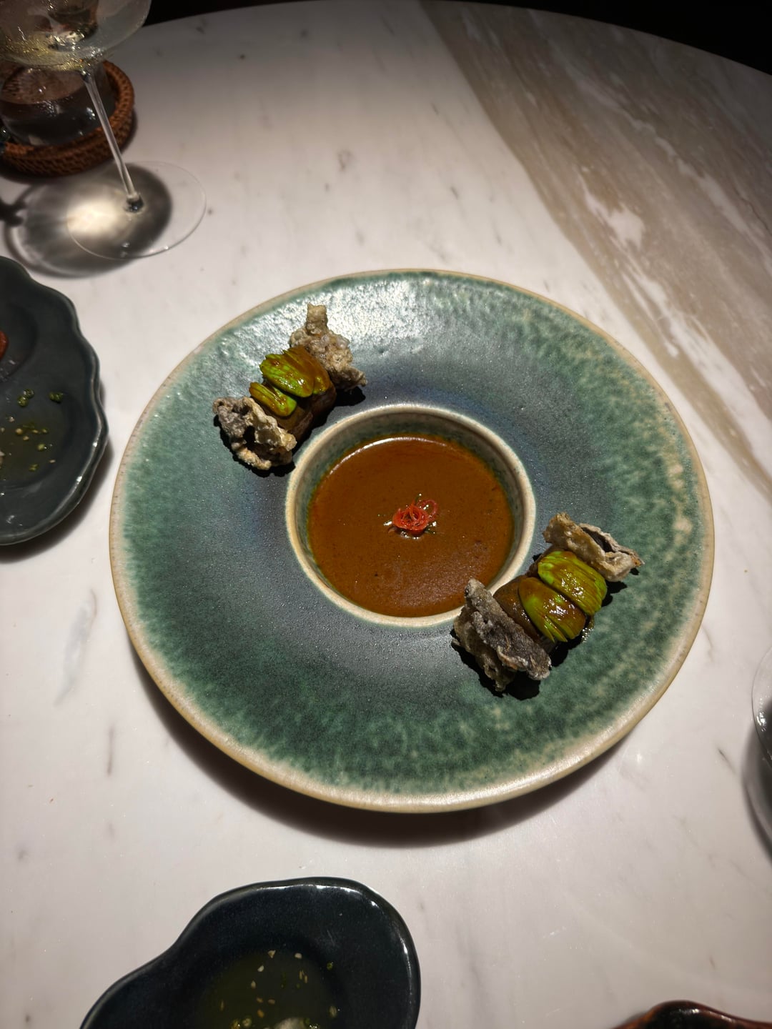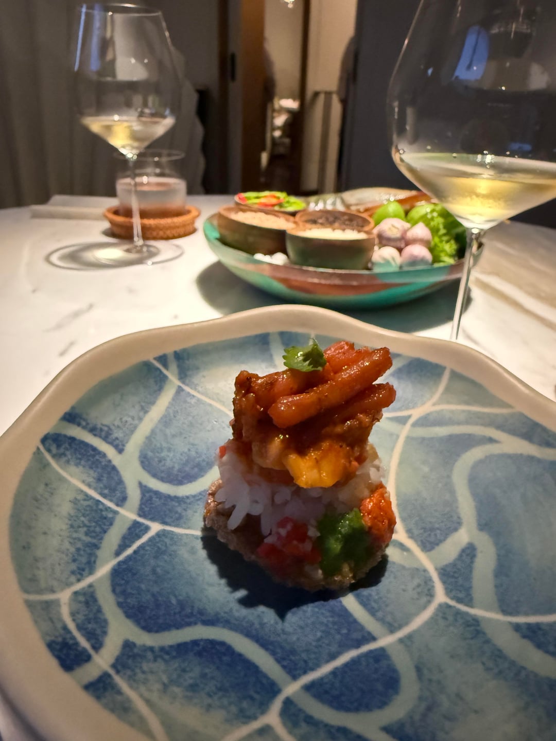 The food itself is high quality and rooted in classic Southern Thai cuisine. The appetizers were the highlight: refined, flavorful, and occasionally surprising. They hinted at creativity and elevation. The main courses, however, leaned heavily into tradition — essentially a series of very well-executed classic Thai dishes served with rice. Delicious, yes. But not particularly artistic or groundbreaking.