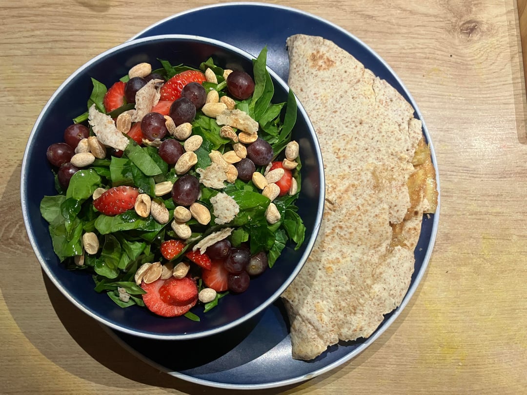 - 1 wholeblend piadina, heated for a couple minutes in a dry frying pan