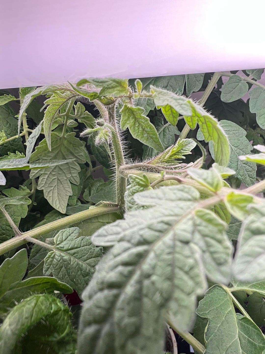 Pinch and raise your lights. Light should be 2″ or more from the tops of your plants