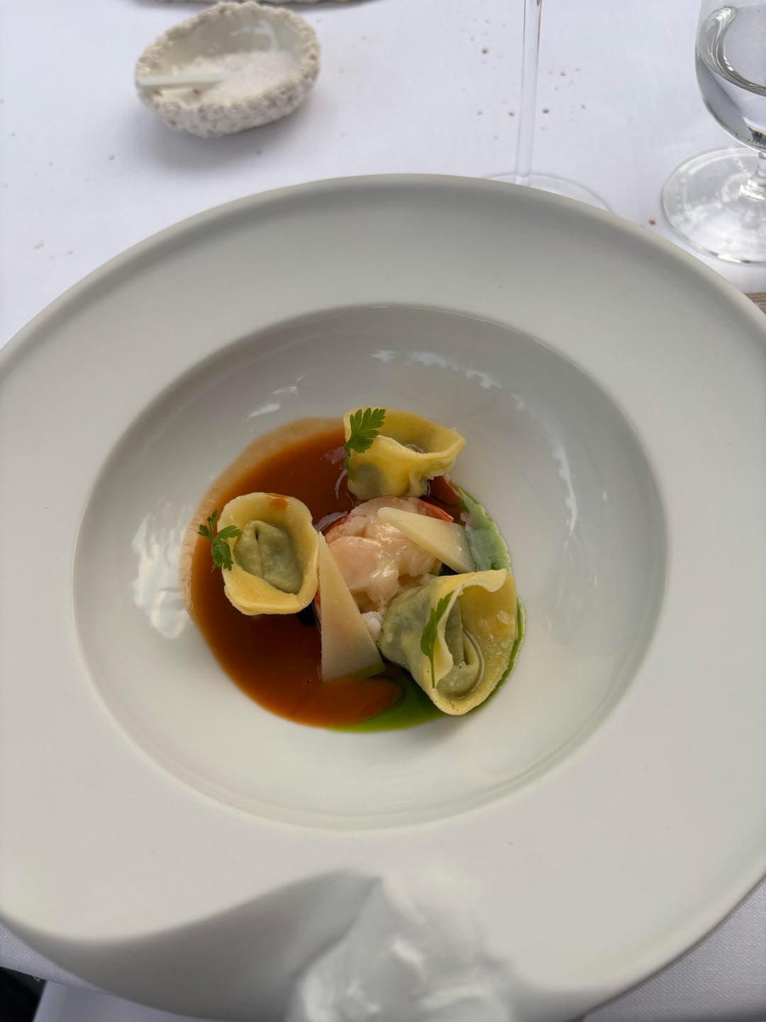 The second course was lobster in 2 preparations: lobster tail with celeriac risotto, capeletti filled with spinach and ricotta, lobster bisque and tarragon oil