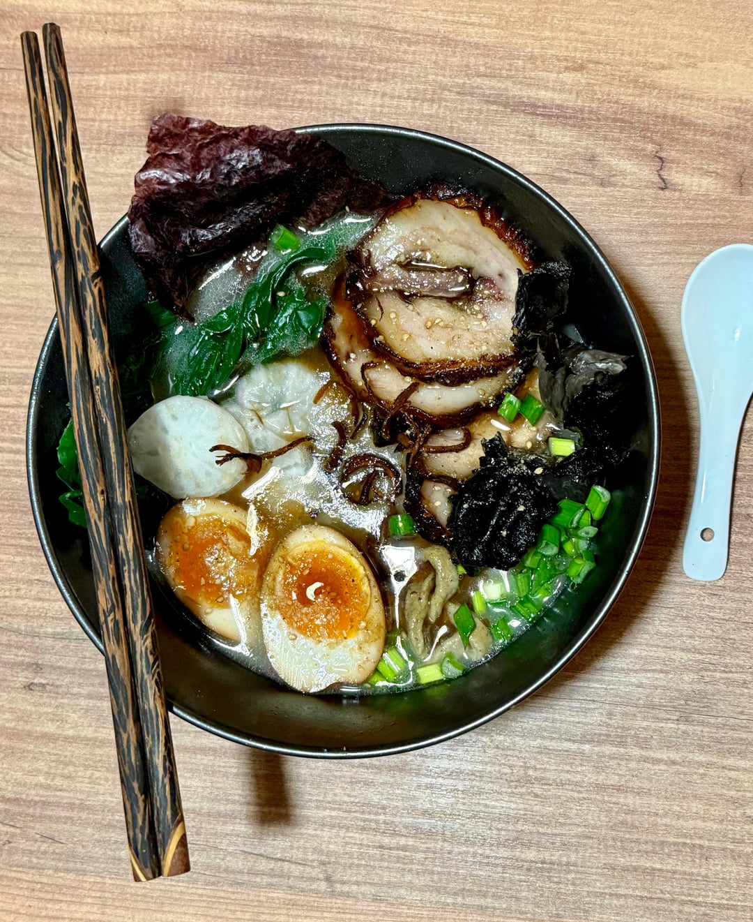 I forgotten that I had tonkotsu broth from last week shoyu tonkotsu. So tried something different.