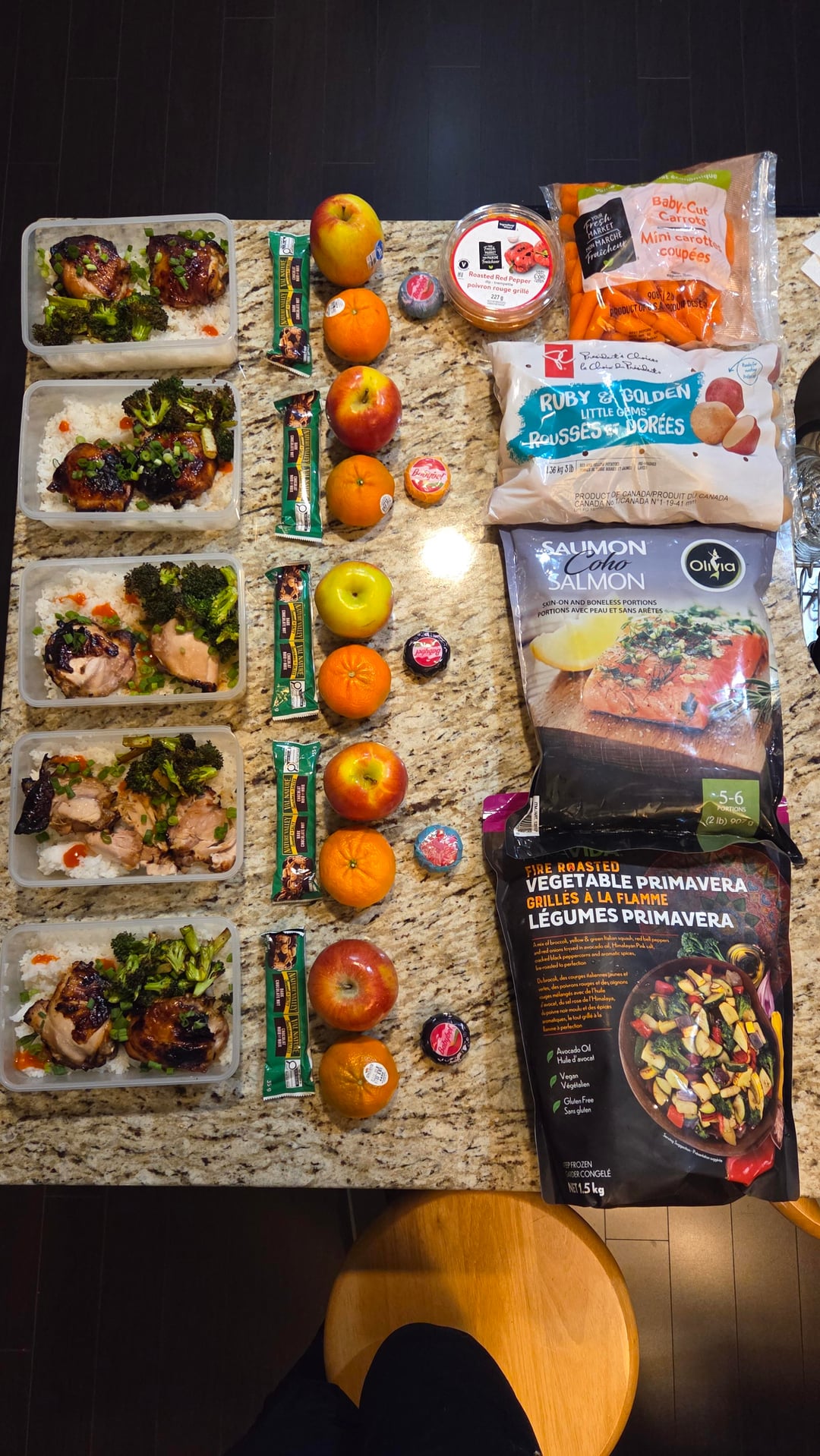 – Honey soy chicken is just thighs and marinade mix, 20 mins in air fryer. Add broccoli in air fryer afterwards.