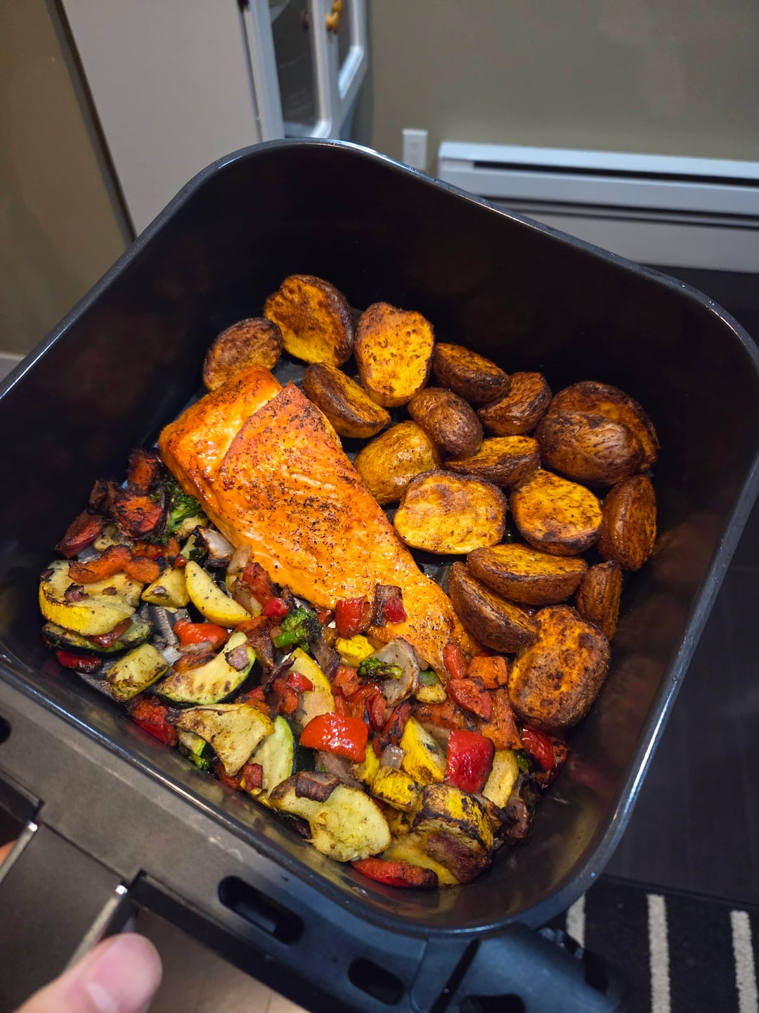 That air fryer salmon and potatoes mix looks fantastic.