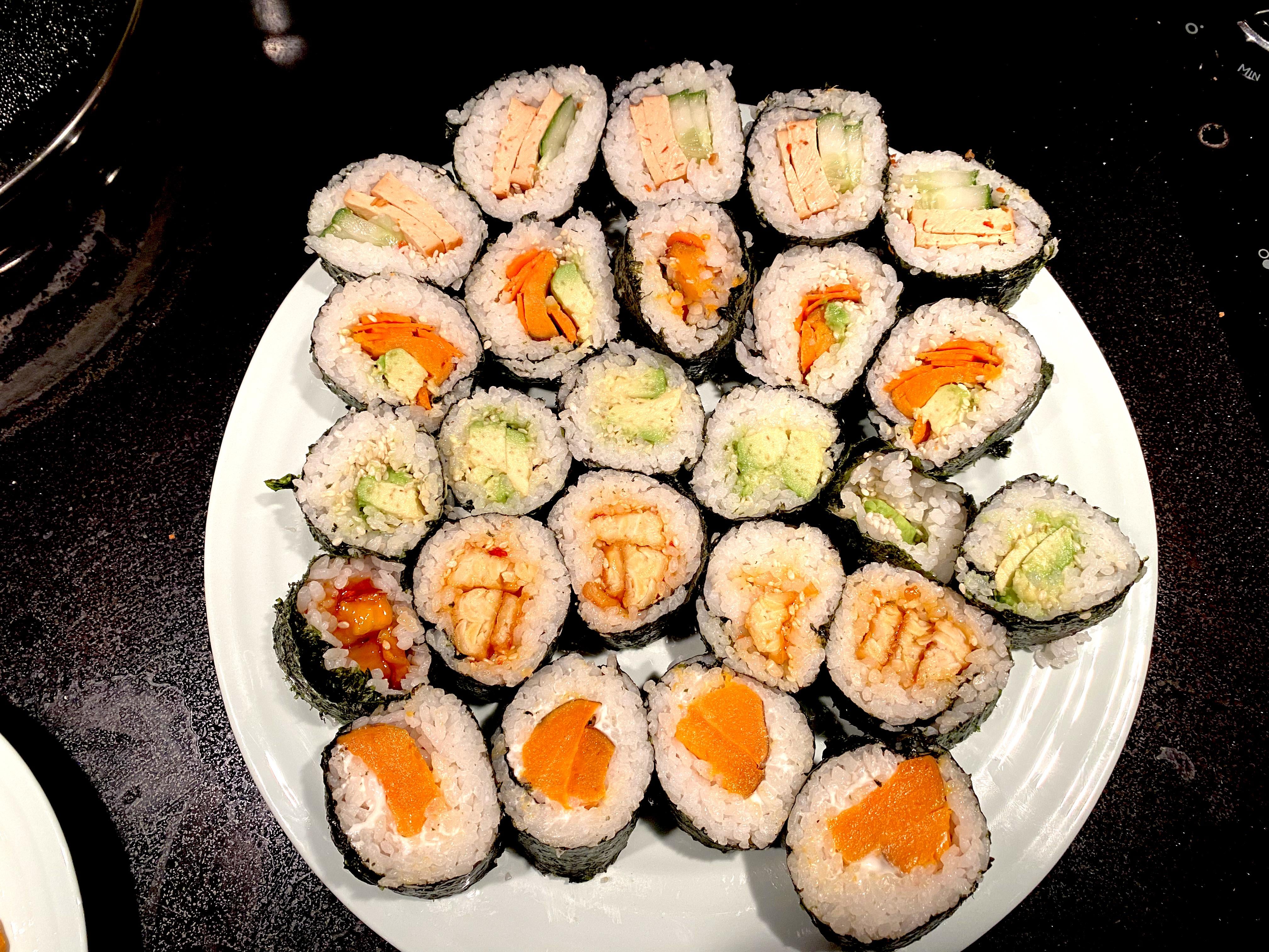 Top to bottom:Spicy smoked tofu and cucumber Carrot and avocadoAvocadoSmoked tofu in sweet chili marinadeBaked yam with vegan mayoWhat else could I try?by EffectiveCartoonist3 6 Comments Fuzzy_Welcome8348 5 days ago Looks great! rocsi1234 5 days ago 😍😍 AISkeleton 5 days ago That looks good 😊 kihtay 5 days ago I love cucumber, avocado and mango. Or avocado, red pepper, tofu and cream chz veganbabe98 5 days ago looks good! my fav sushi is deep fried cucumber avocado roll 🤤 xhighinheelsx 4 days ago Yum!