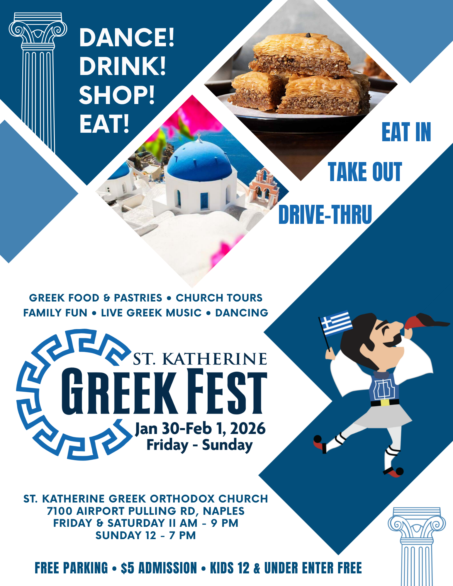 Naples, FL — St. Katherine Greek Orthodox Church is proud to present its annual Greek Fest, returning to Naples for a weekend of Greek food, culture, live music, dancing, and community celebration. The festival will take place on the church grounds at 7100 Airport Road North, Naples, FL 34109, featuring authentic cuisine, traditional pastries, Greek wines and spirits, vendors, entertainment, and fun for all ages.