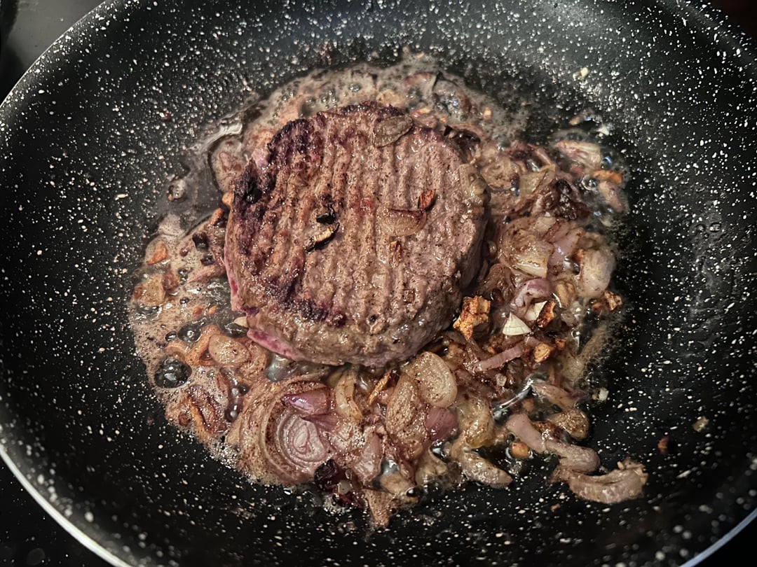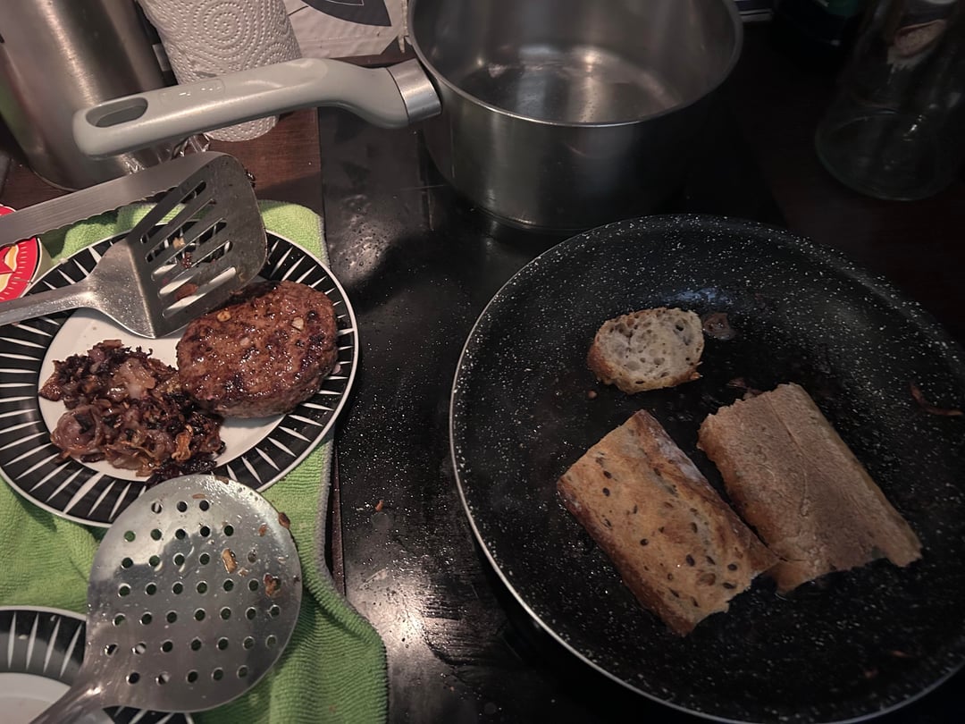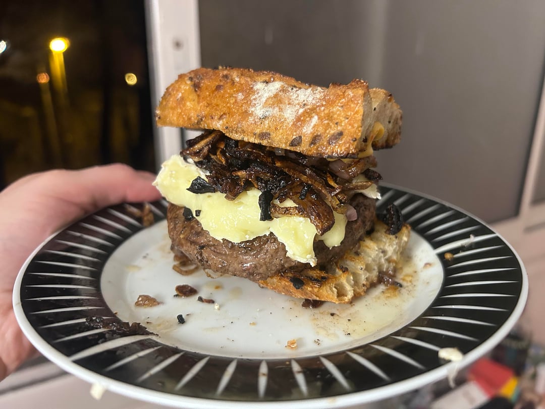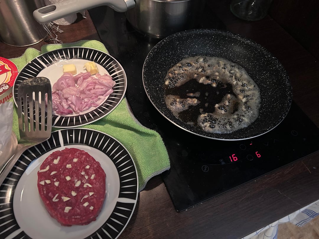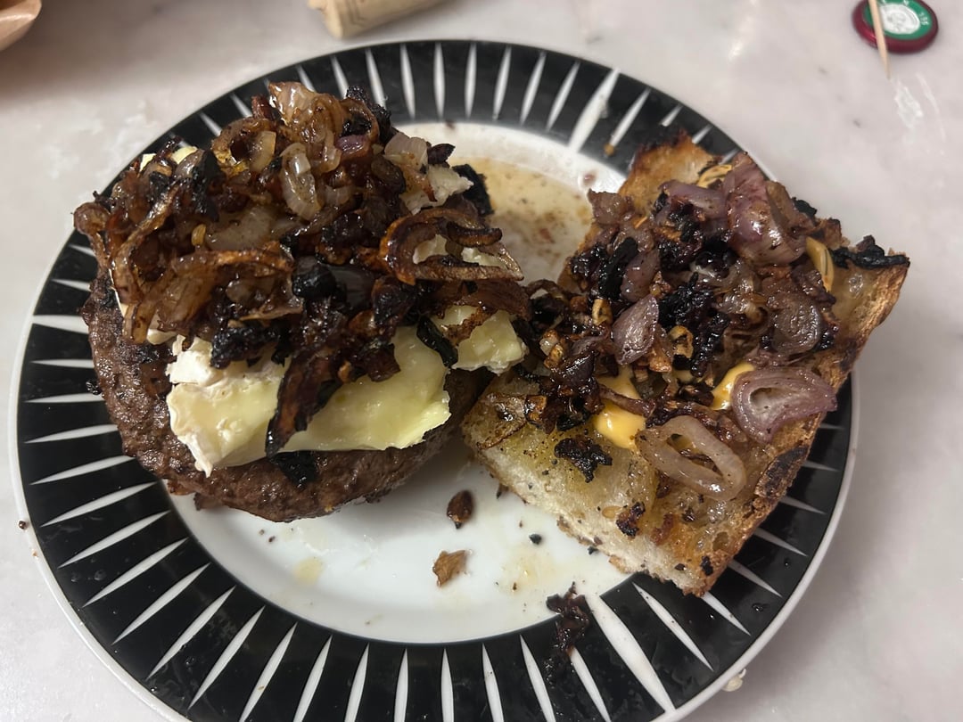 Cooked some of the shallots a bit too long and set off the smoke detector but the burger was fire
