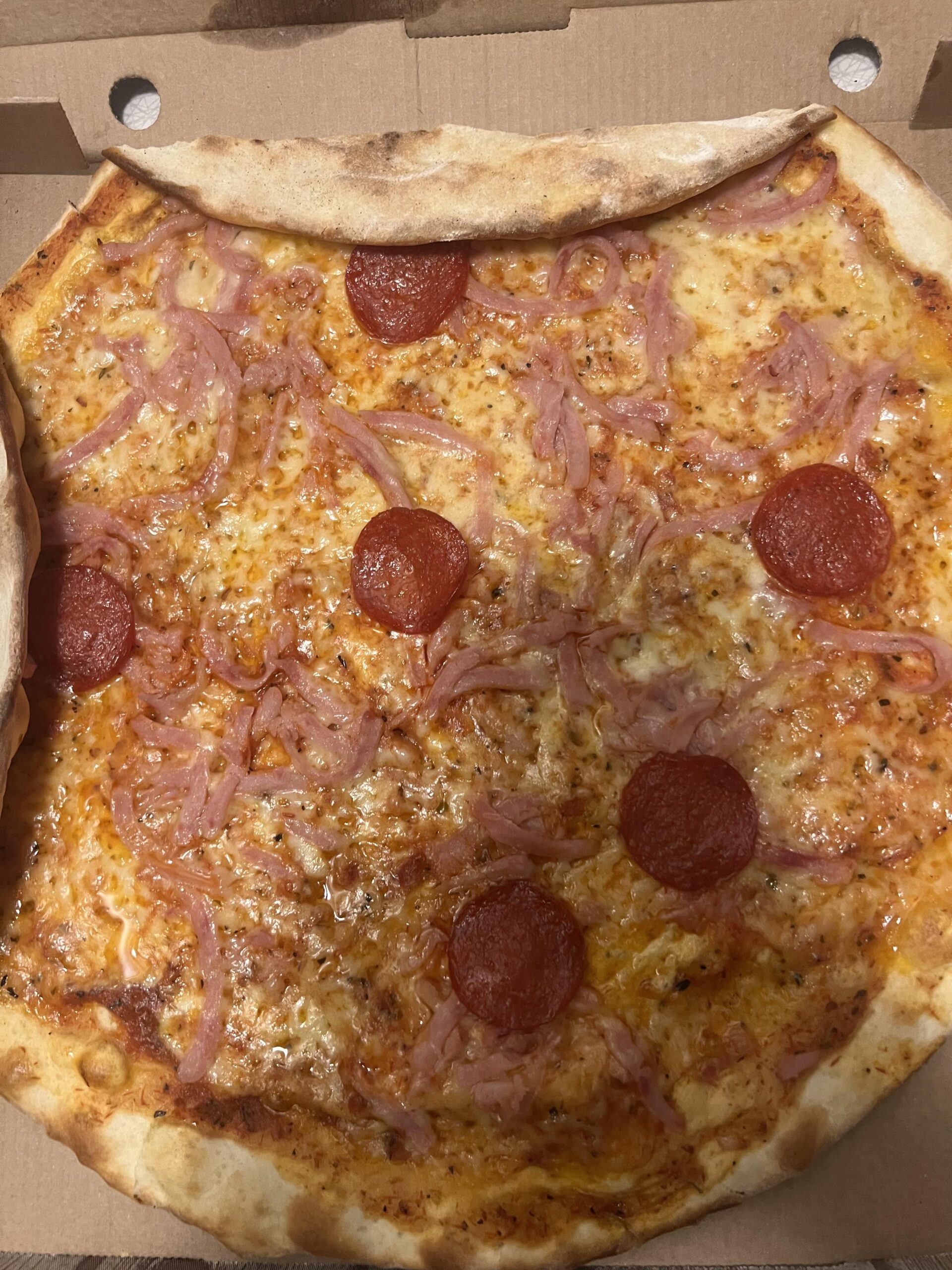 Deffo low on the pepperoni. But are those pink pickled onions on there’s too🤔