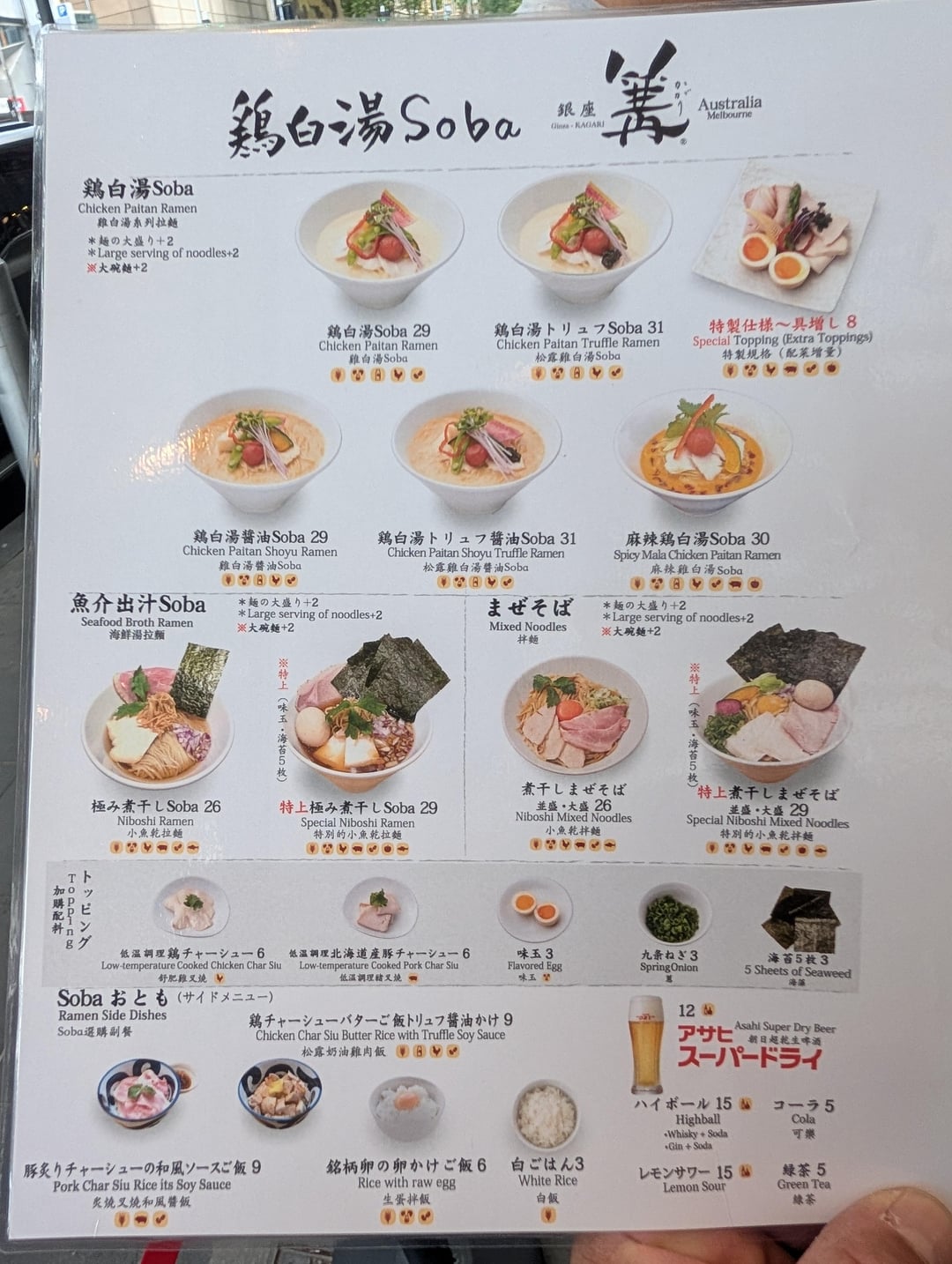 recently opened Ginza Kagari in Melbourne, soup ingredients are all imported from Japan. soup was thick and rich. it clung to the noodles for dear life! they have a few other options there that I'll go back and try