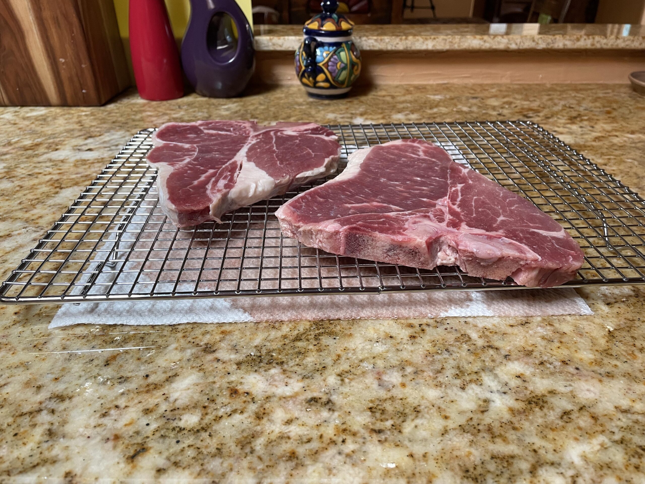 Said buddy gives me two of the "T-Bones" and asks if I'll cook them for us since I cook such great steaks.