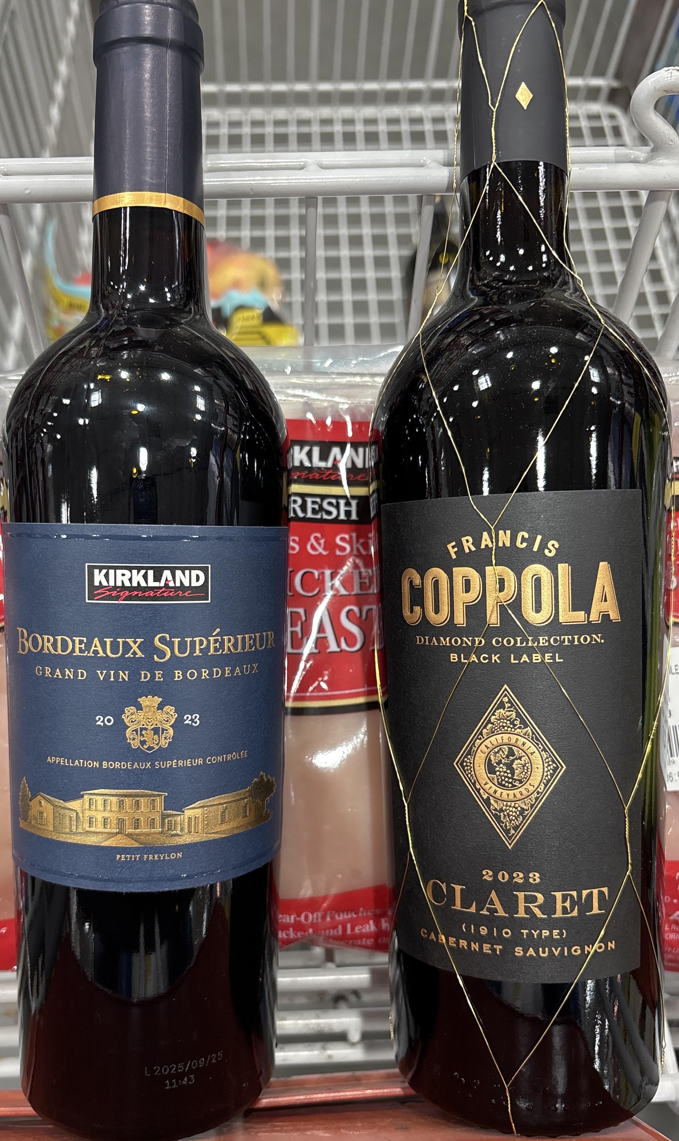 I tried the Kirkland Bordeaux recently and thought the price-to-quality ratio was outstanding. Coppola’s Claret isn’t bad for grocery store wine at the Costco price, but I think the Kirkland Bordeaux is better and costs even less.