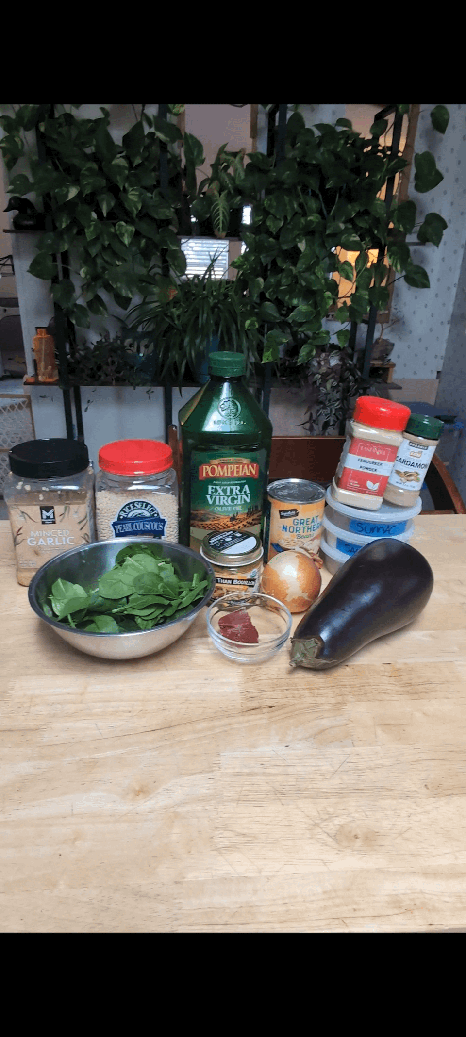 Absolutely loved this recipe from the ATK Mediterranean cookbook! Page 174, Hearty Couscous, Eggplant, White Bean and Spinach. Had to buy these spices to make this, but I'm sure I'll be using them plenty more for cooking through this book!