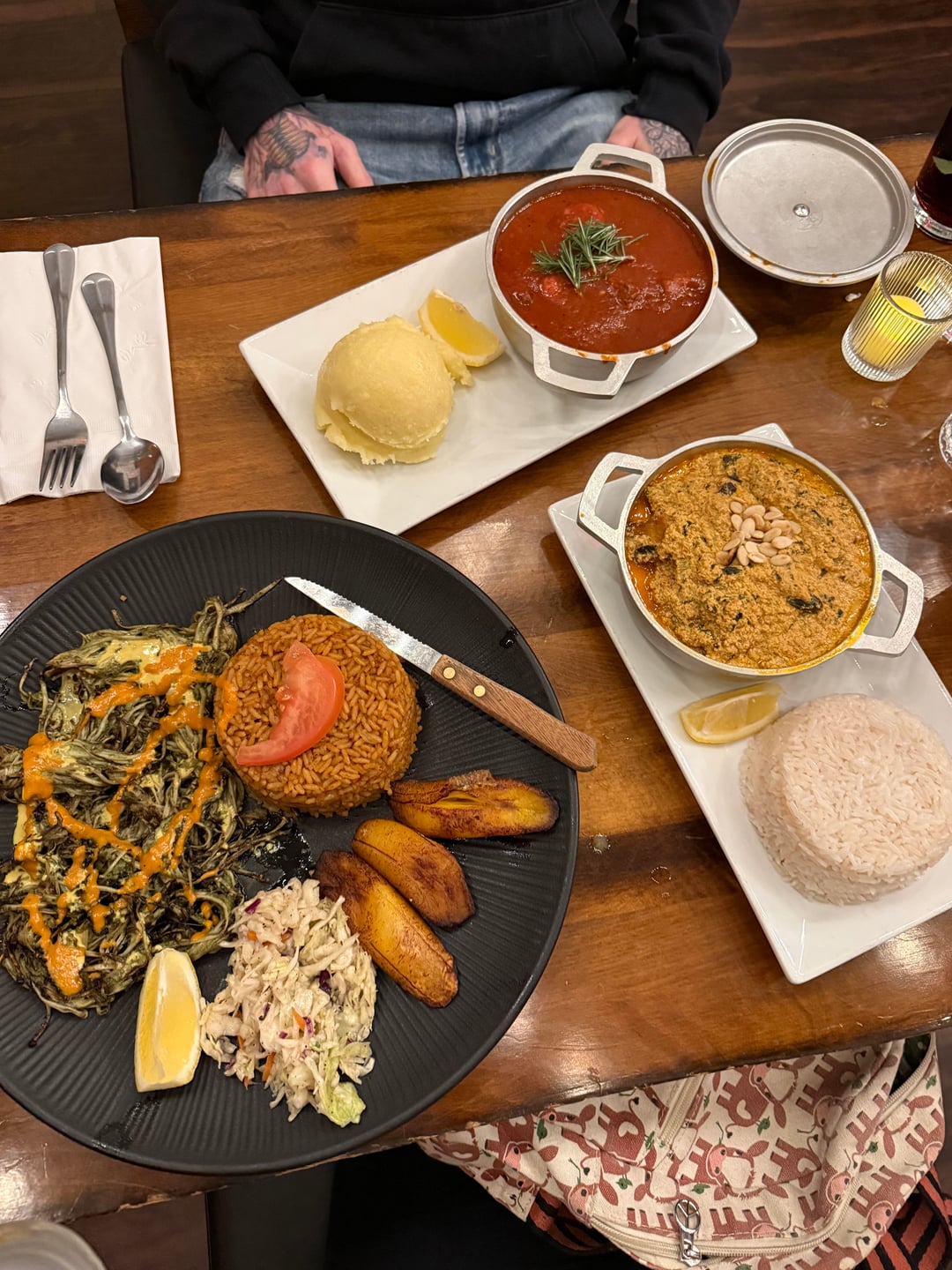 Why was the fufu next to the red stew and the rice next to the soup? I hope you didn’t eat it like that.